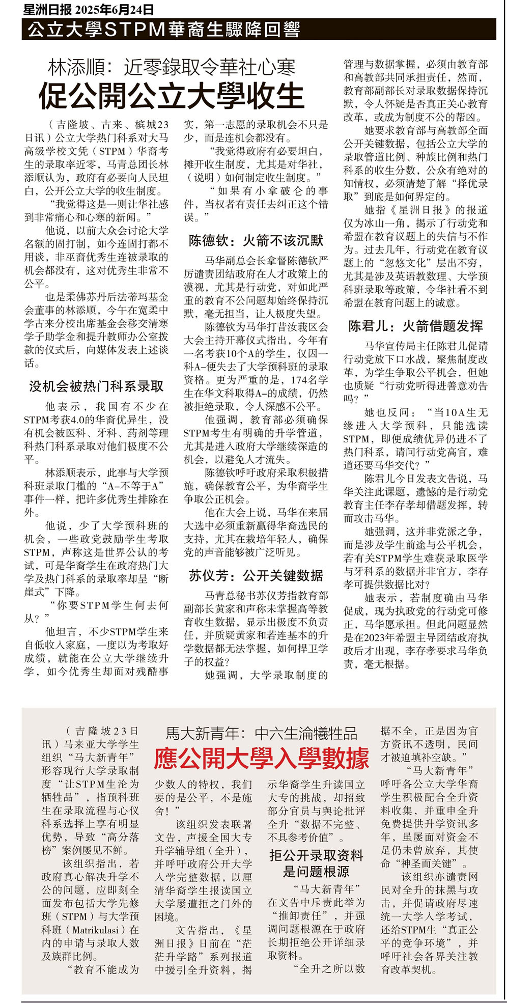 公立大学STPM华裔生骤降回响