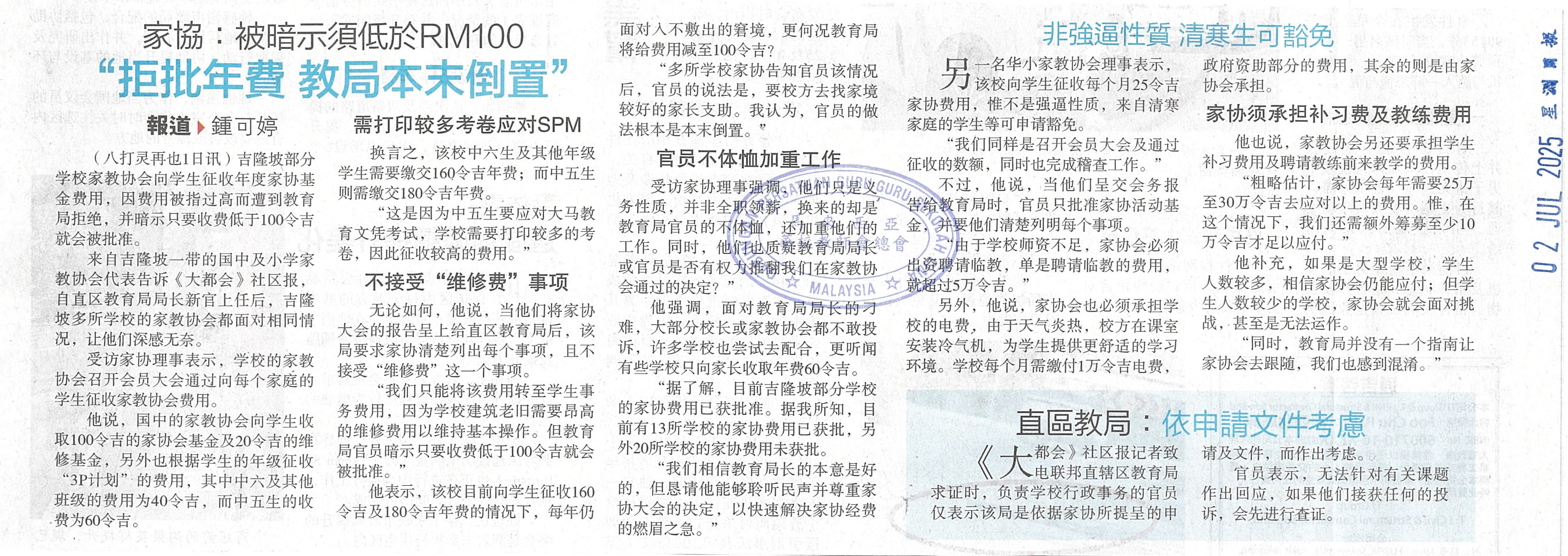 家协:被暗示须低于RM100 “拒批年费,教局本末倒置”