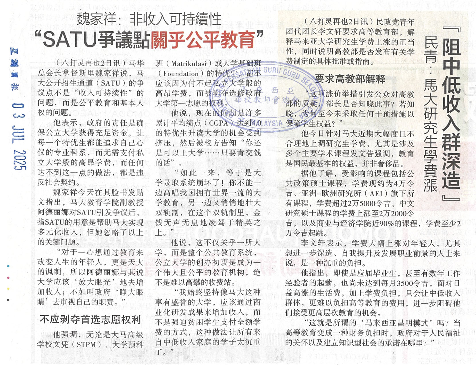 下一篇文章: 家协:被暗示须低于RM100 “拒批年费,教局本末倒置”