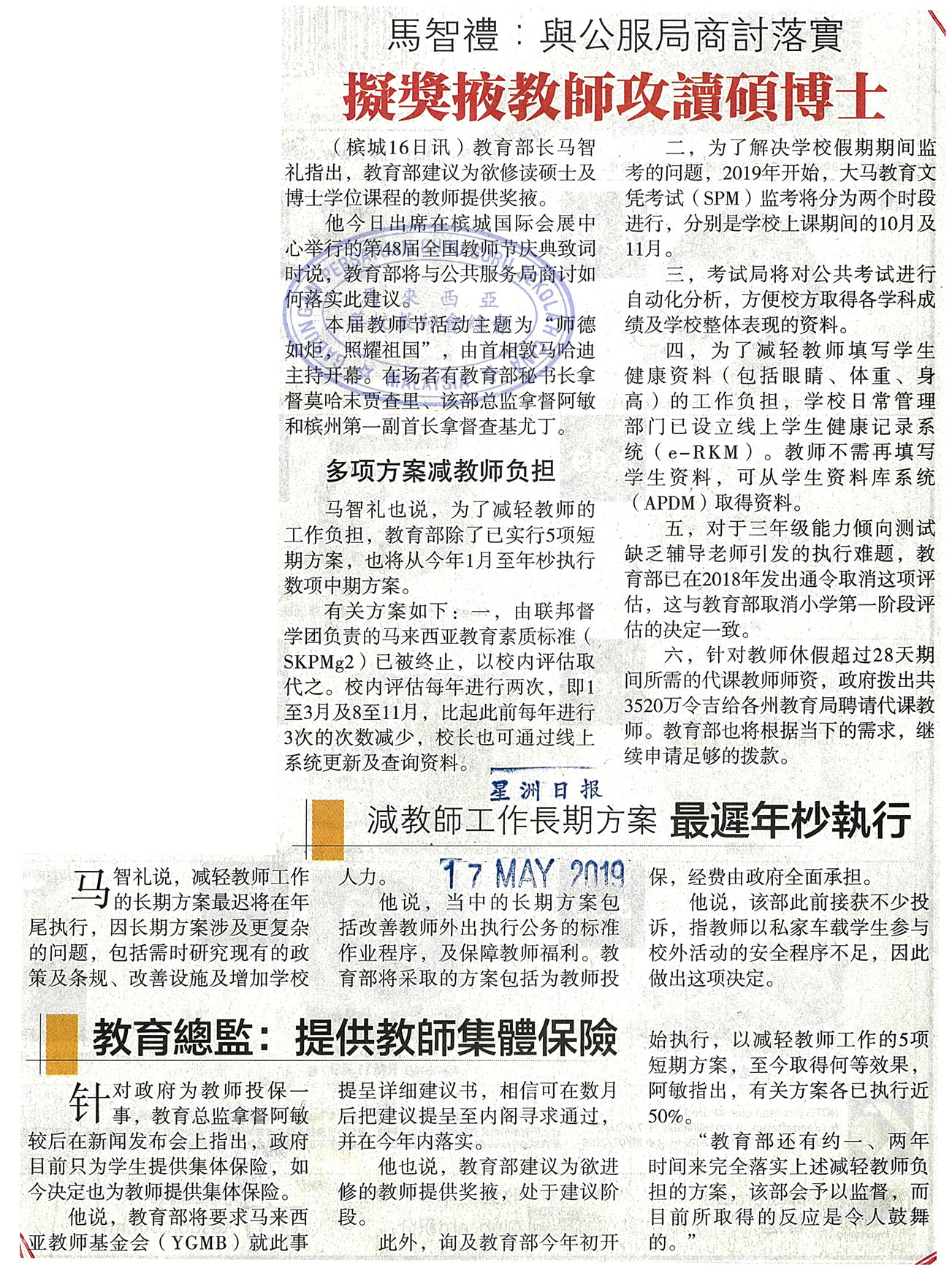 马智礼:与公共服务局商讨落实 拟奖掖教师攻读硕士博士