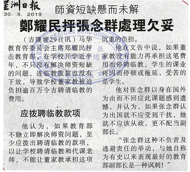 师资短缺悬而未决 郑耀民抨张念群处理欠妥