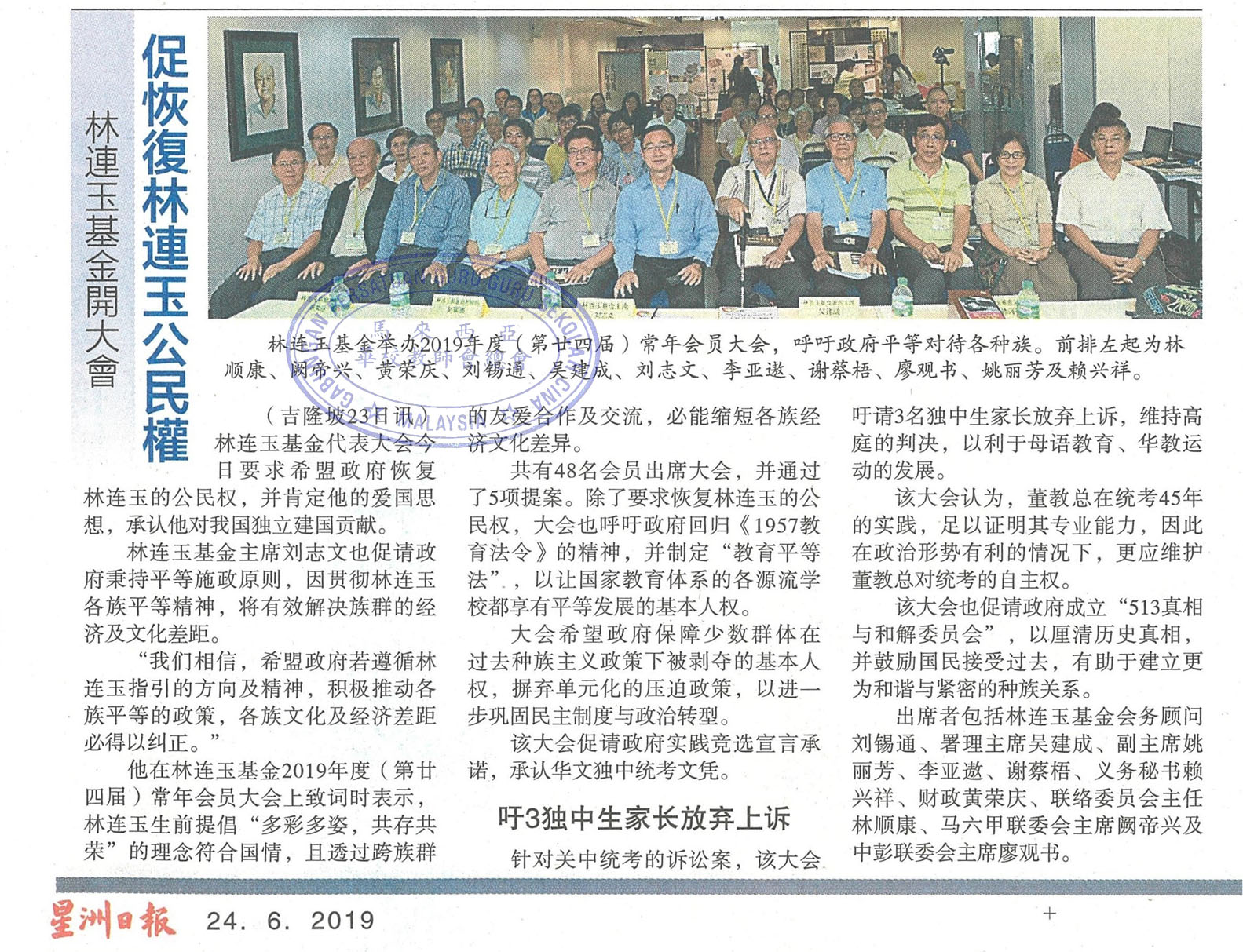 林连玉基金开大会 促恢复林连玉公民权