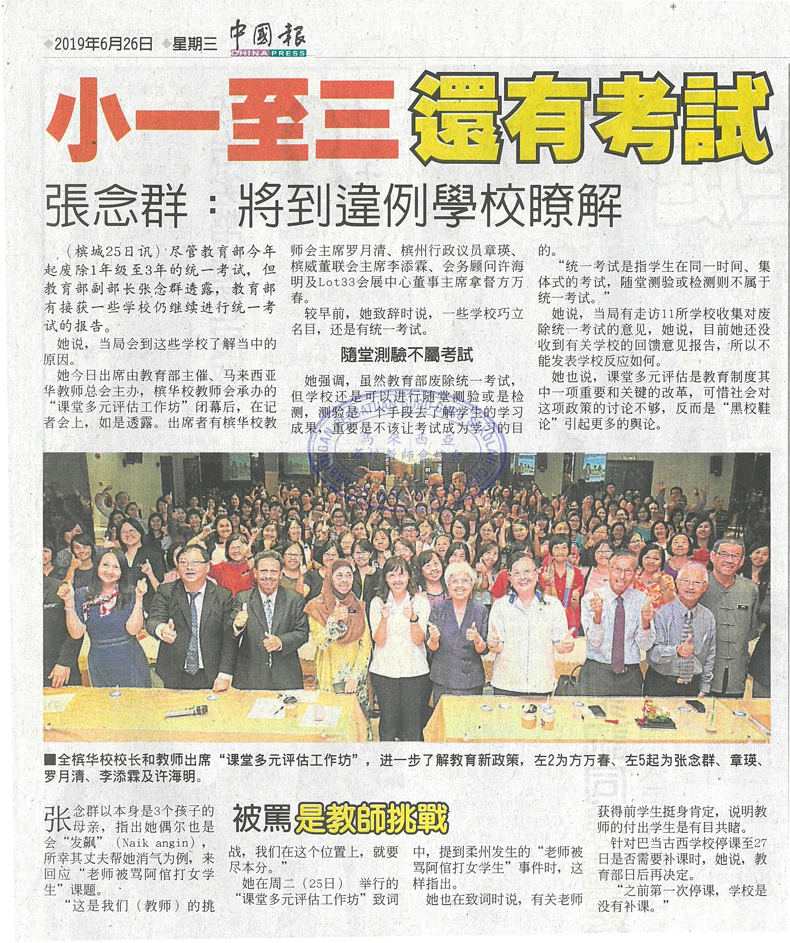 小一至三还有考试 张念群:将到违例学校了解