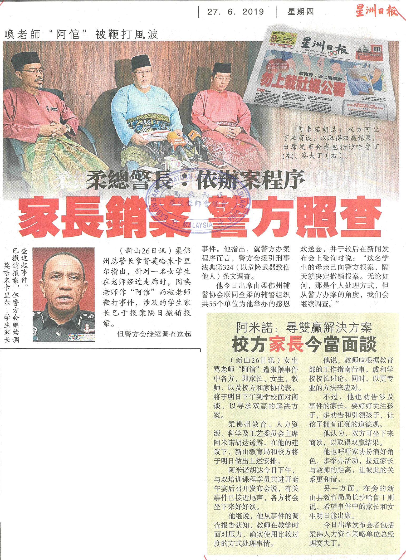 柔总警长:依办案程序 家长销案 警方照查