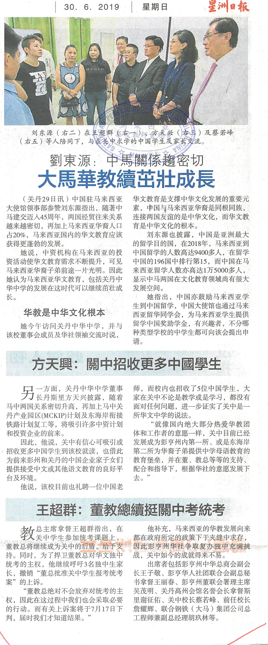 刘东源:中马关系趋密切 大马华教续茁壮成长