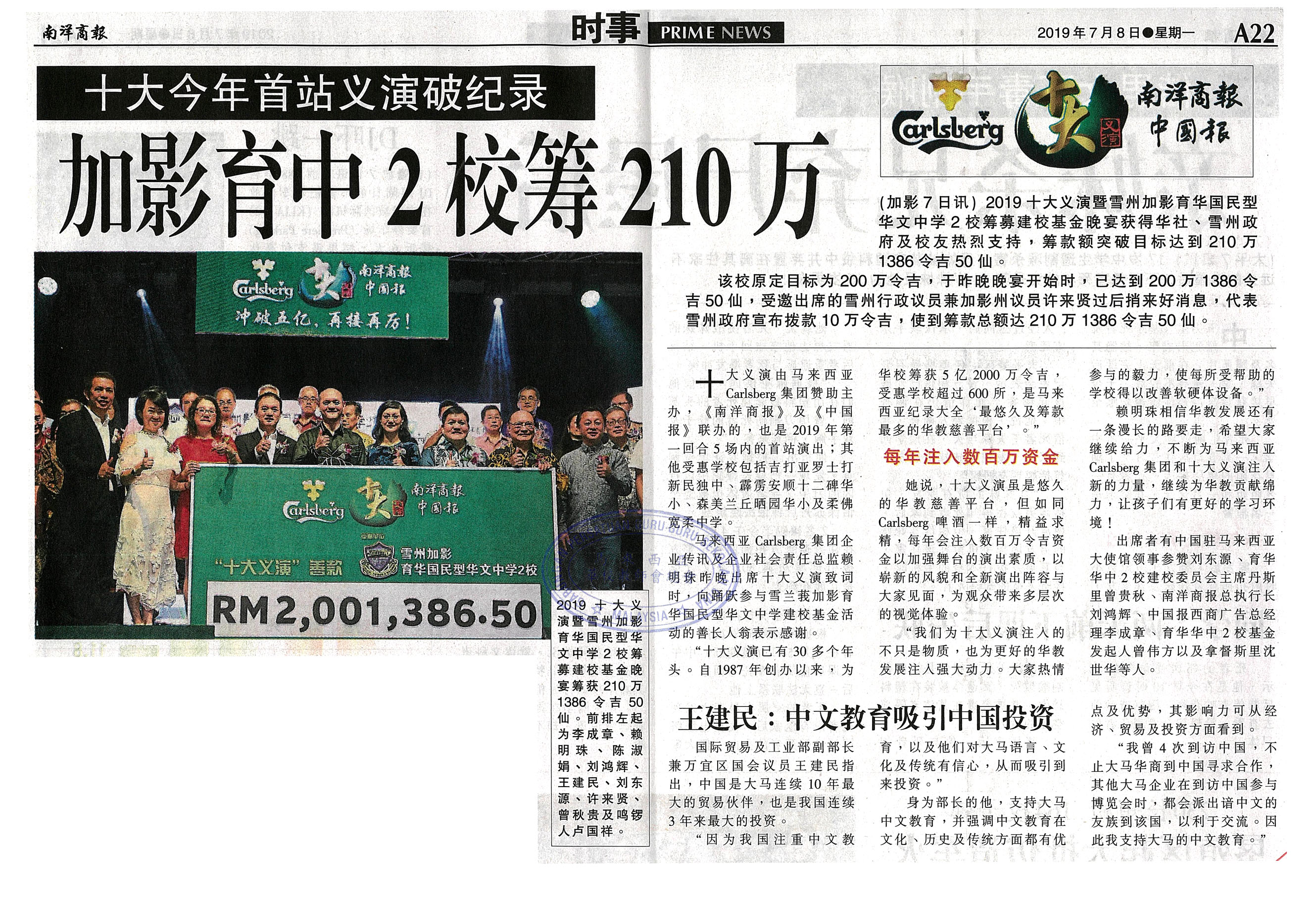 十大今年首站义演破纪录 加影育中2校筹210万