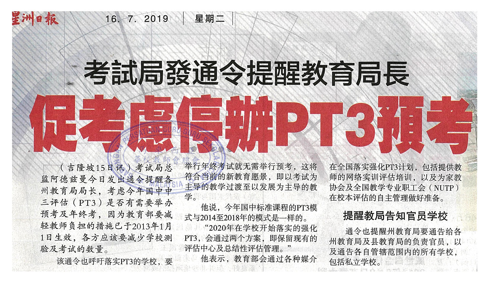 考试局发通令提醒教育局长 促考虑停办PT3预考