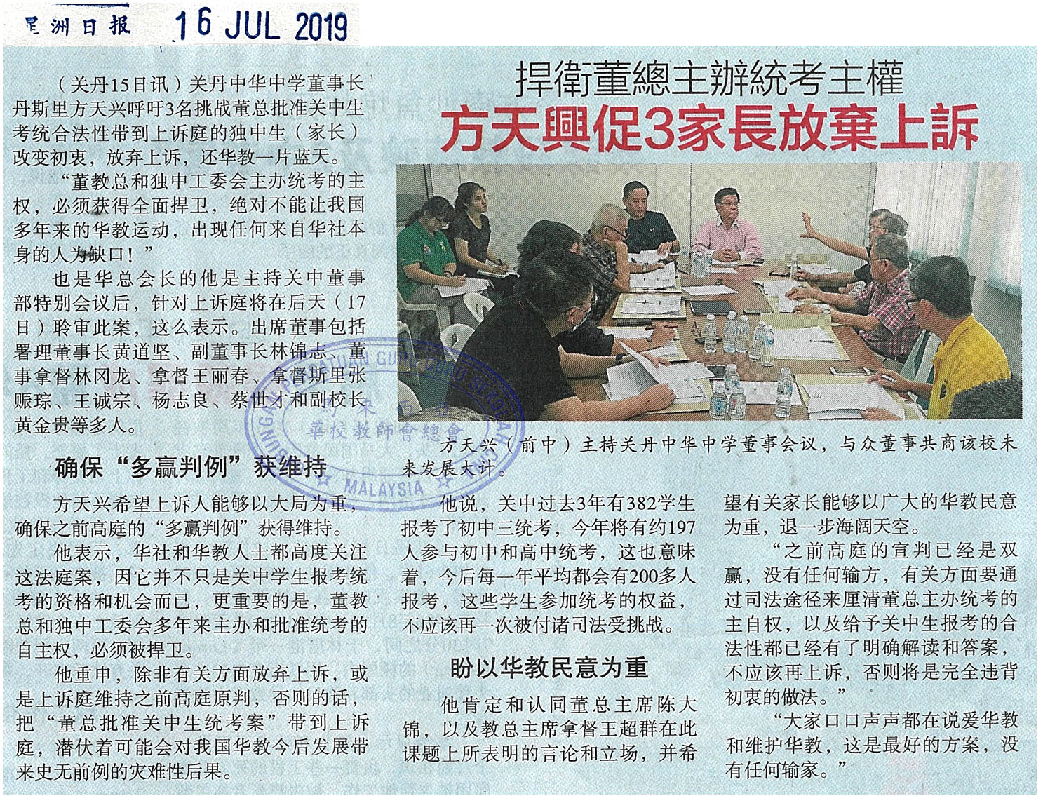捍卫董总主办统考主权 方天兴促3家长放弃上诉