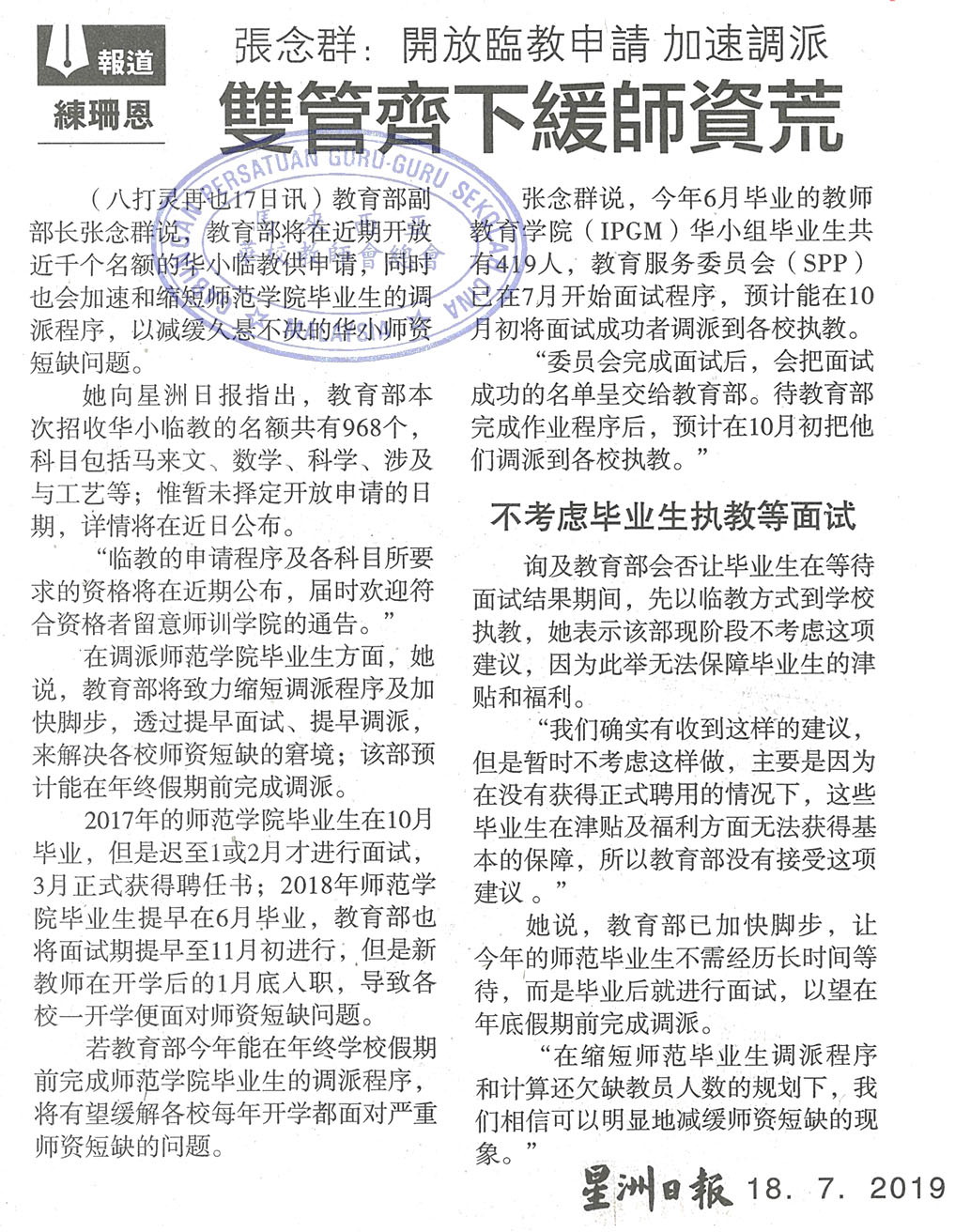 张念群:开放临教申请 加速调派 双管齐下缓师资荒