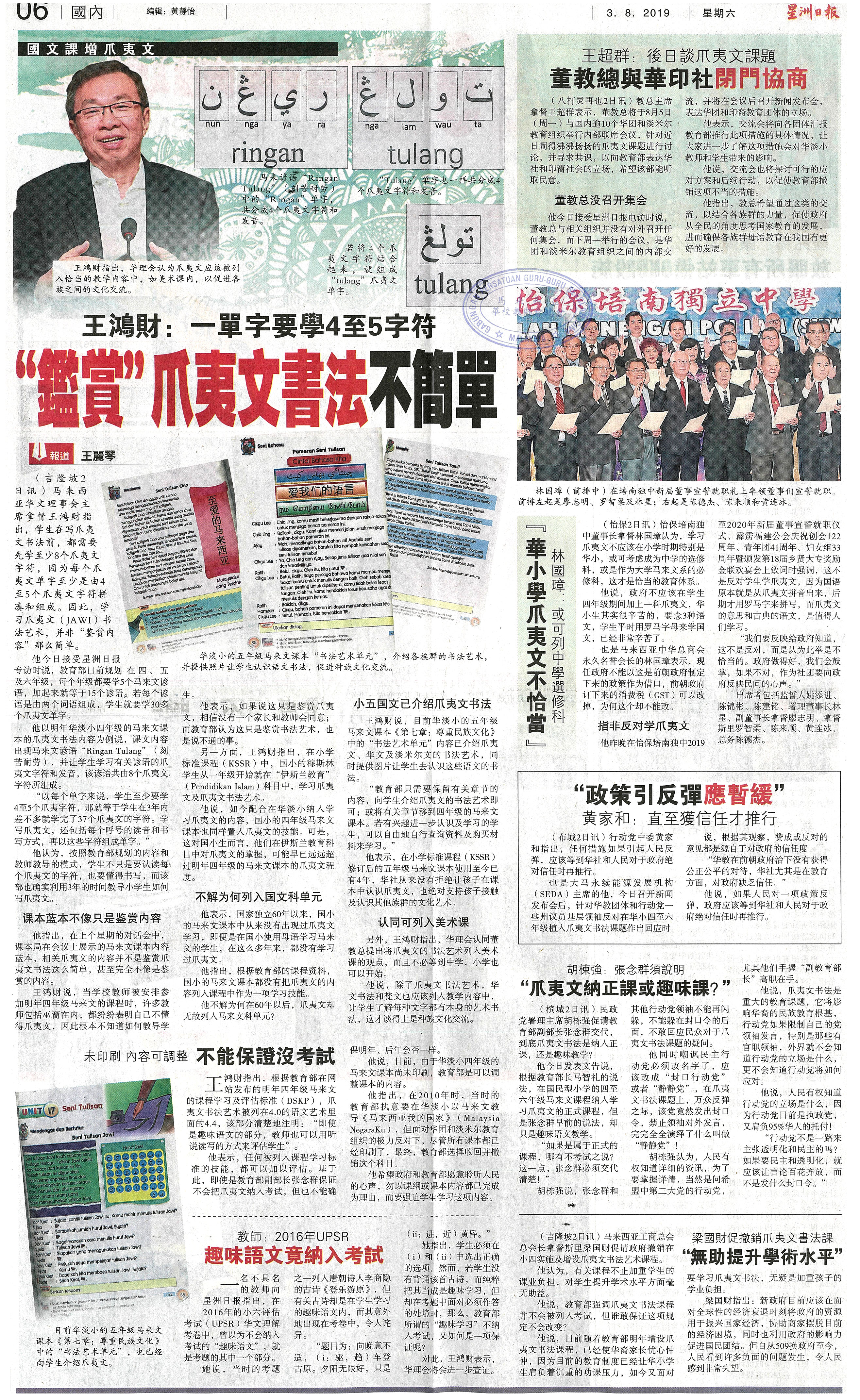 华淡小国文科增设爪夷文书法艺术单元新闻剪报 WhatsApp 上一篇文章: 华淡小国文科增设爪夷文书法艺术单元新闻剪报 上一页 下一篇文章: 华淡小国文科增设爪夷文书法艺术单元新闻剪报(马来媒体) 下一页