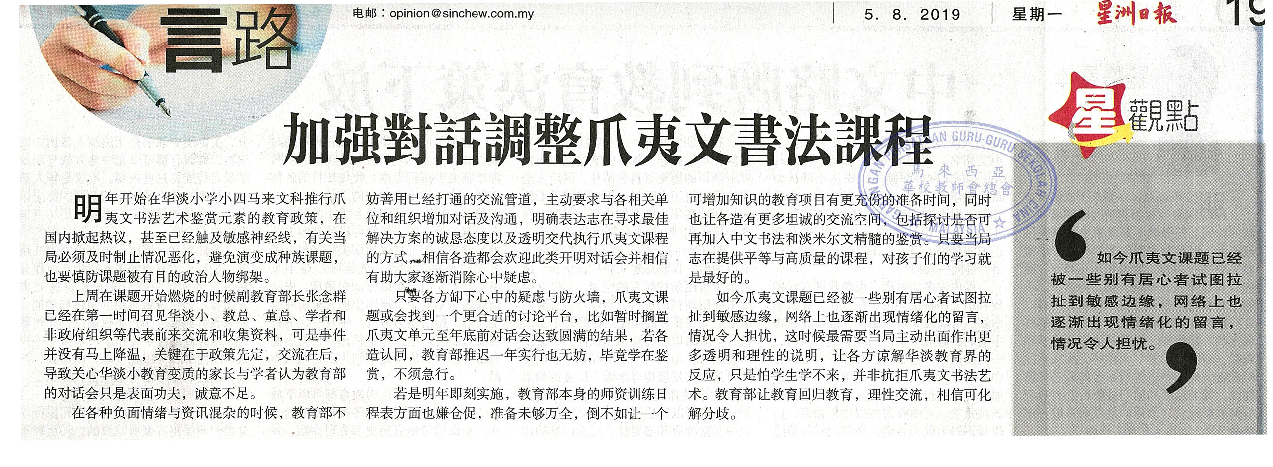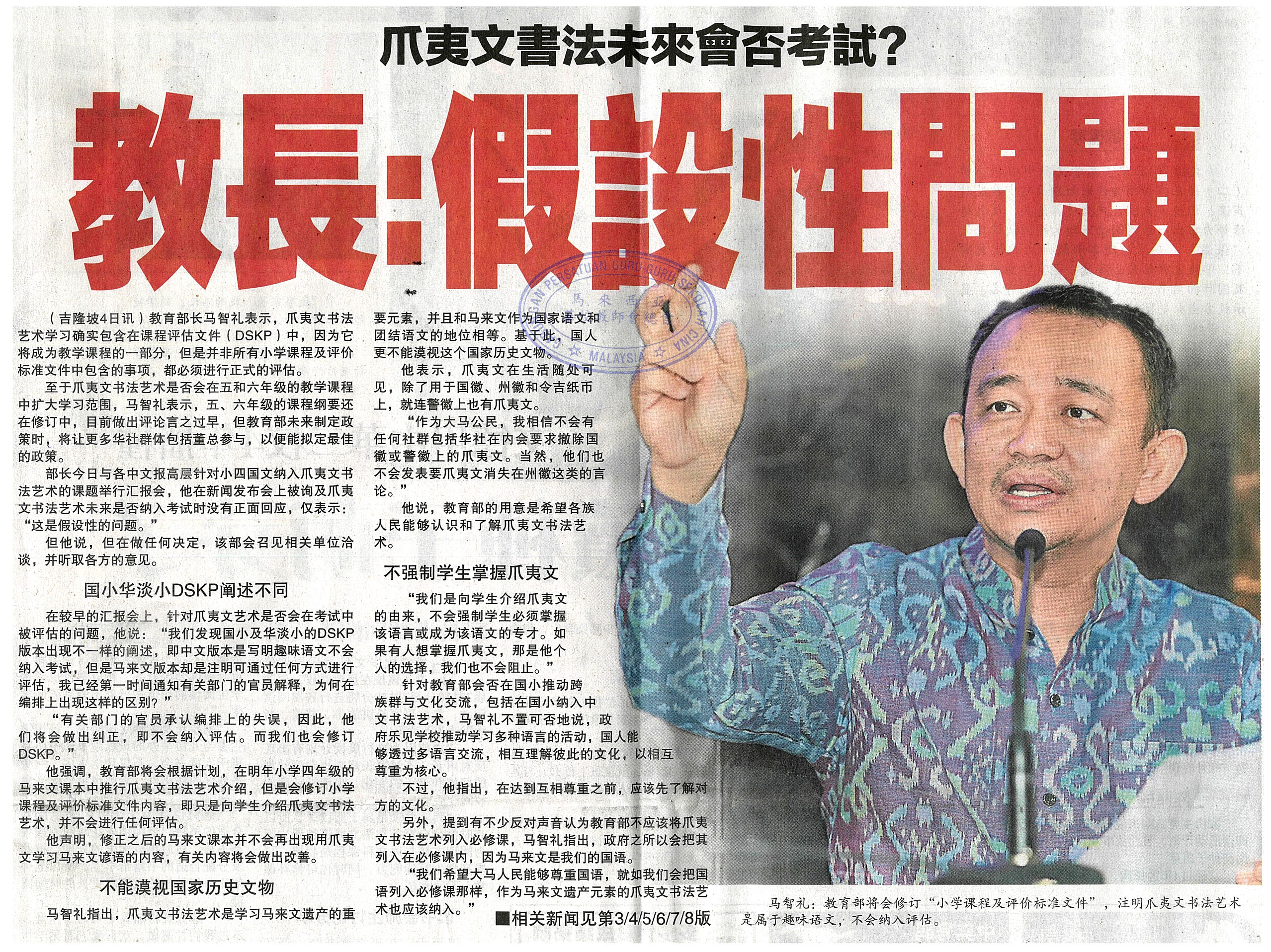 华淡小国文科增设爪夷文书法艺术单元新闻剪报