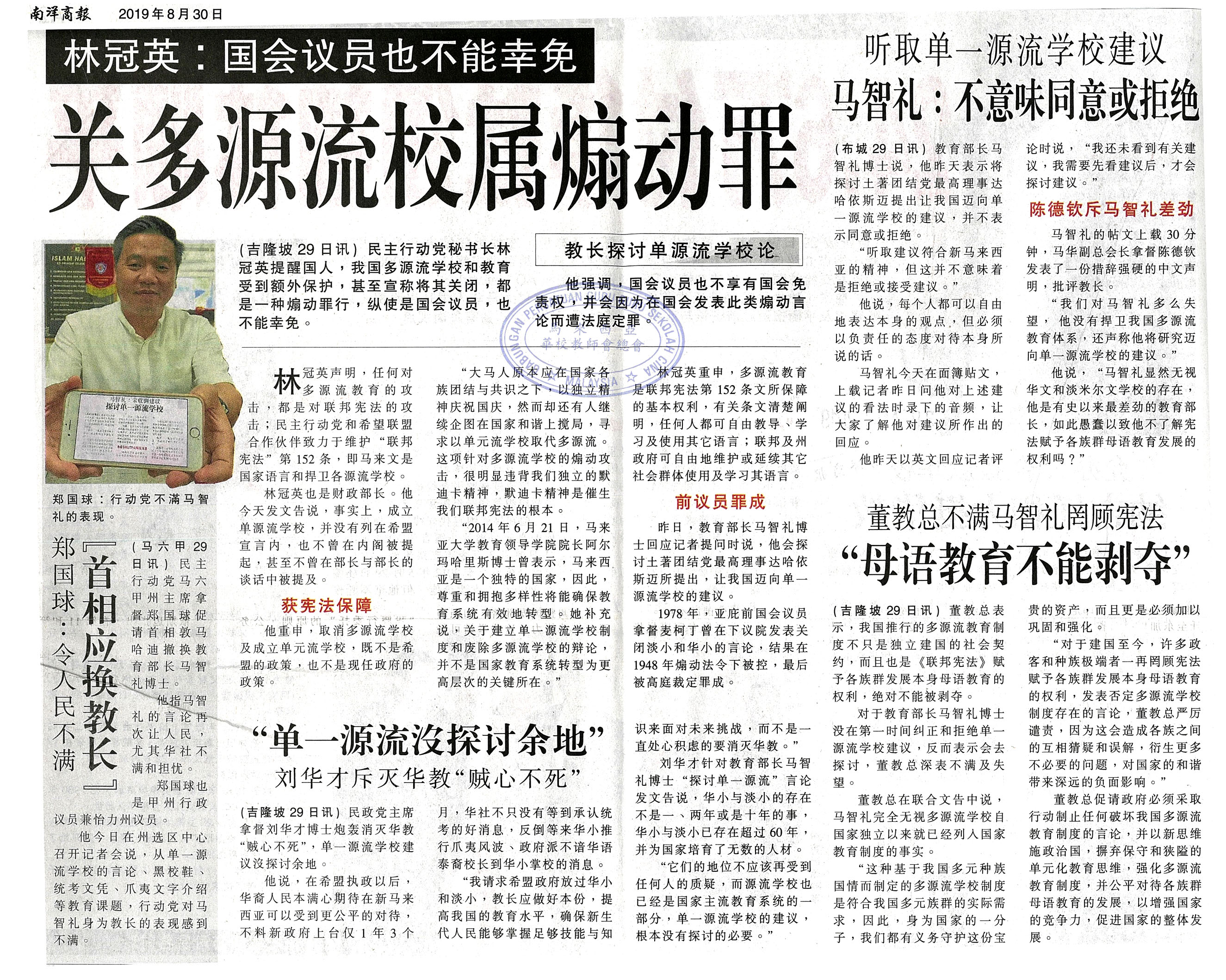 林冠英:国会议员也不能幸免 关多源流校属煽动罪