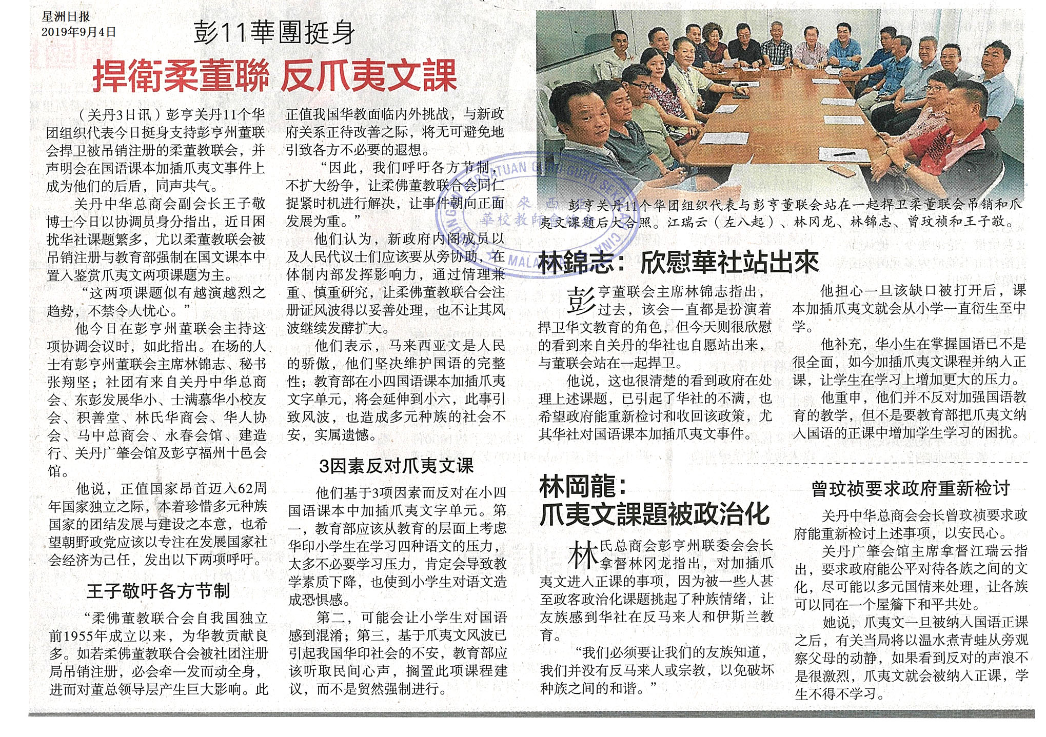 彭11华团挺身 捍卫柔董联 反爪夷文课