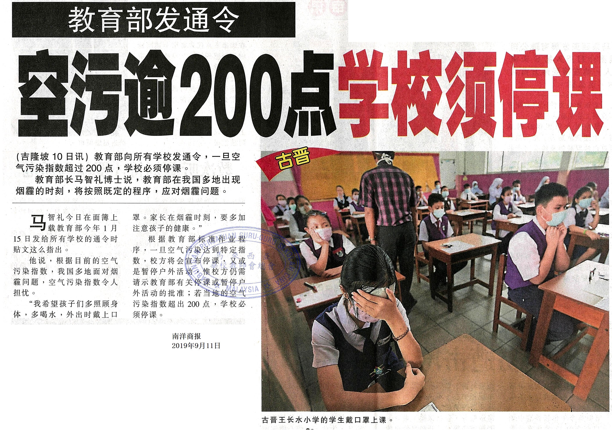 教育部发通令 空污逾200点学校需停课