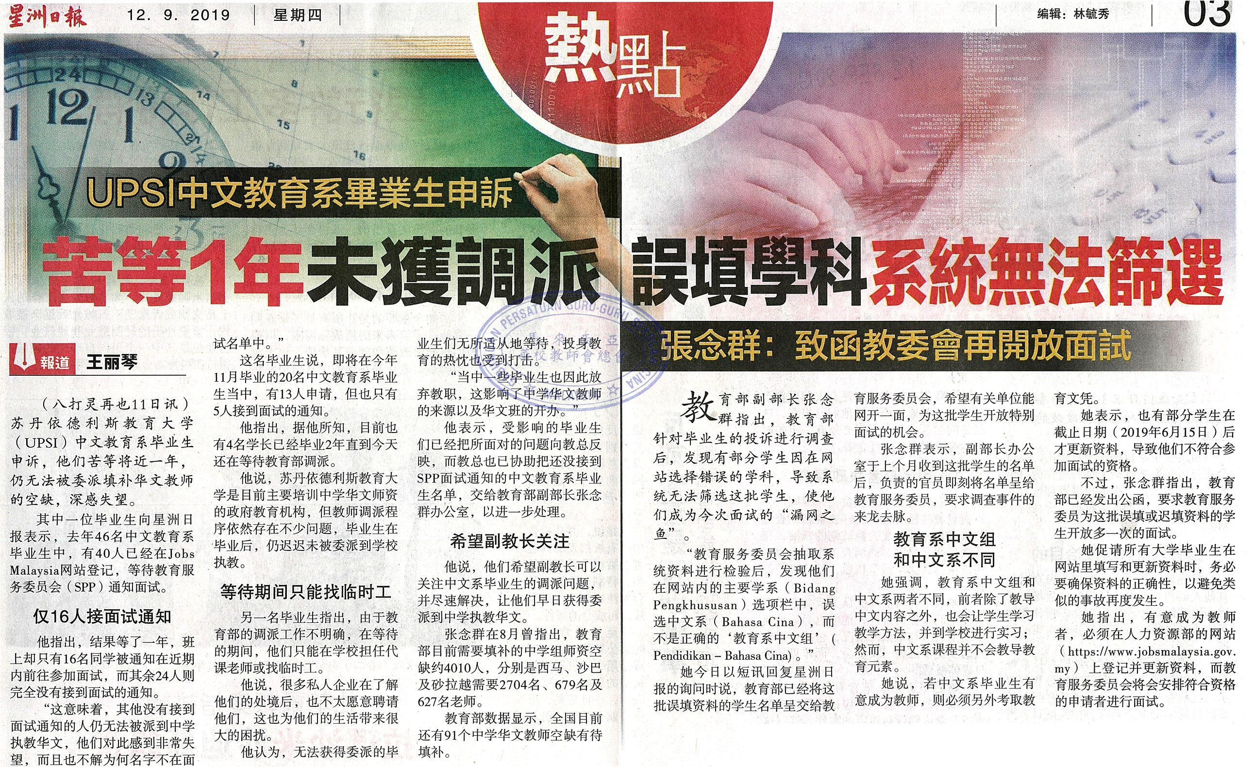 UPSI中文教育系毕业生申诉 苦等1年未获调派