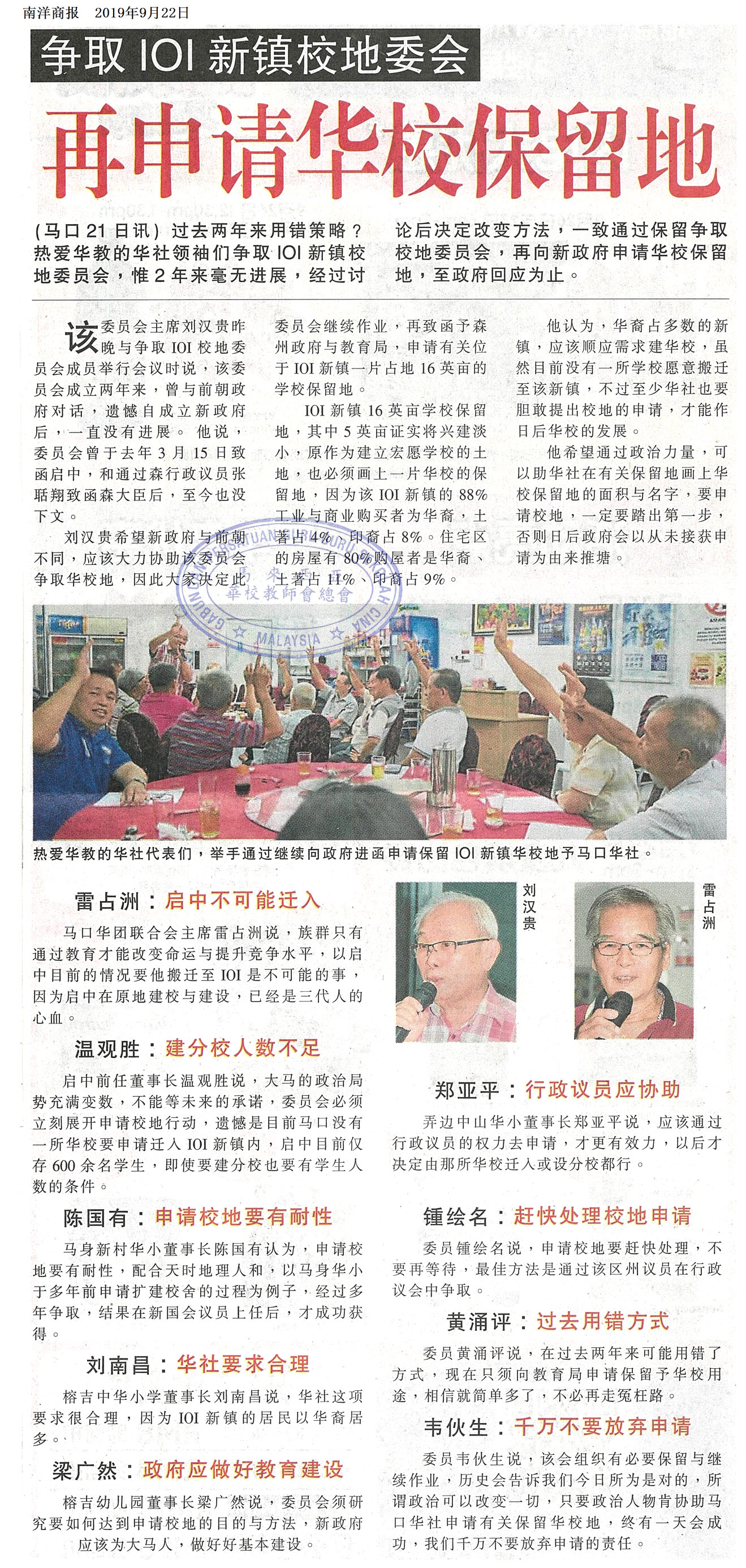 争取IOI新镇校地委会 再申请华校保留地