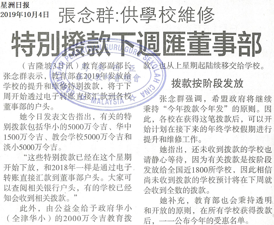 上一篇文章: 首阶段教育拨款 雪颁702万给135校