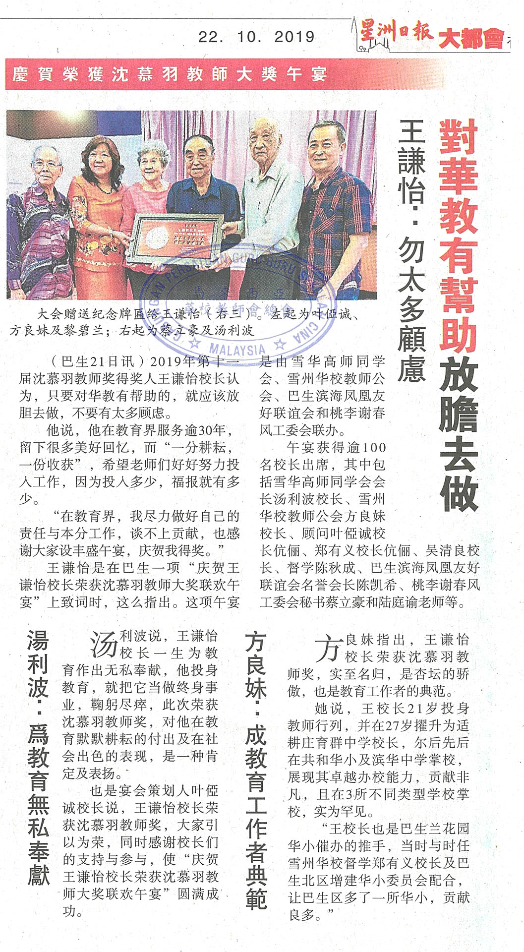 王谦怡:勿太多顾虑 对华教有帮助放胆去做