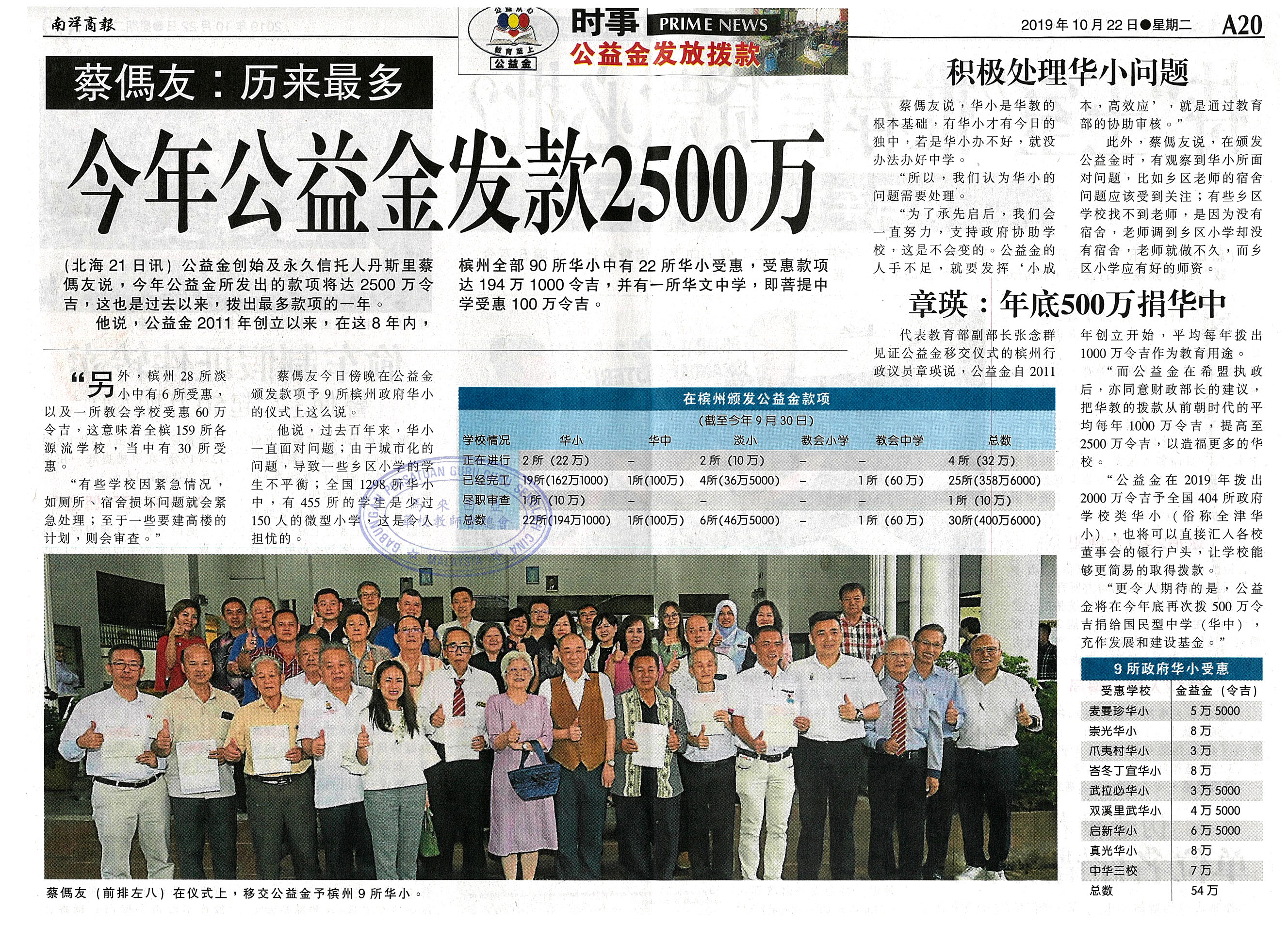 蔡傌友:历来最多 今年公益金发款2500万 WhatsApp 上一篇文章: 呛不拨款10+6华小课题炒冷饭 张念群5要点驳魏家祥 上一页 下一篇文章: 张念群:付学校水电及排污费 教育部将指定机制分配 下一页