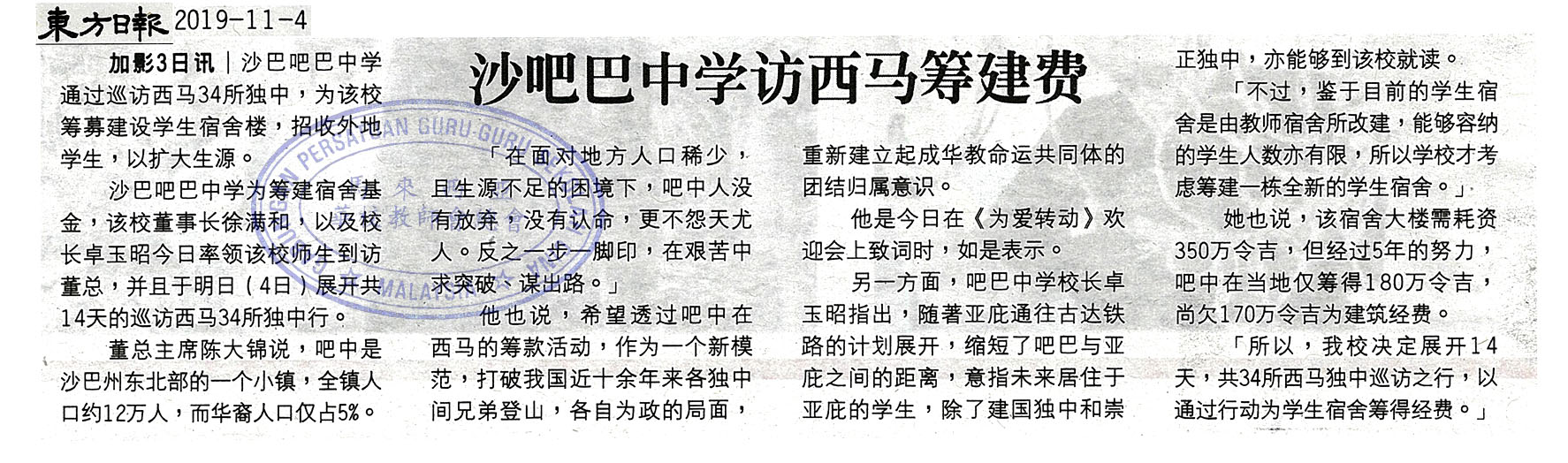 沙吧巴中学访西马筹建费