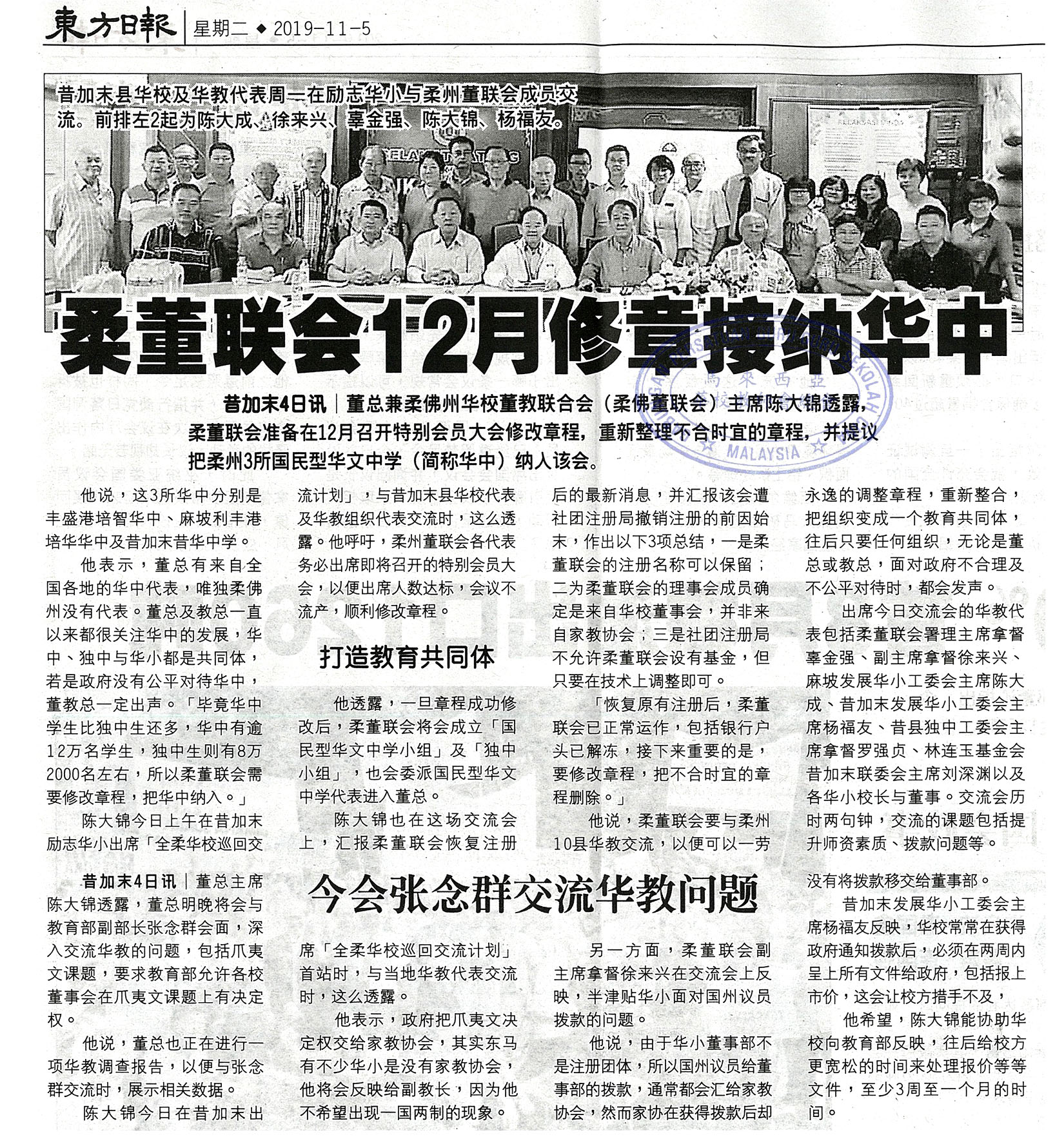 柔董联会12月修章接纳华中