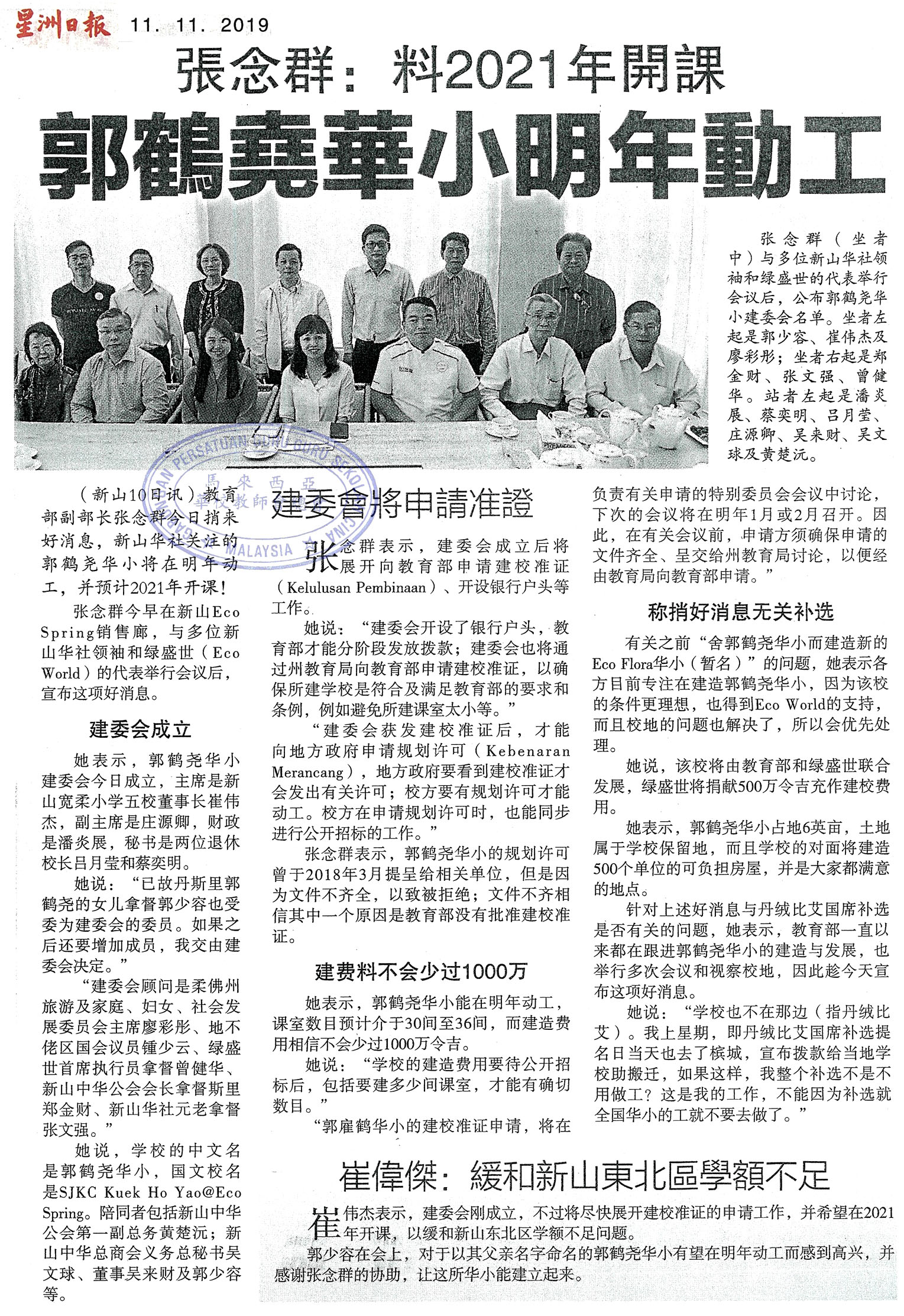 张念群:料2021年开课 郭鹤尧华小明年动工 WhatsApp 上一篇文章: 邱进福:不禁任何人学其他语言 设母语教育机构不违宪 上一页 下一篇文章: 邓章钦:没承诺立即承认统考 同僚应为失言道歉 下一页