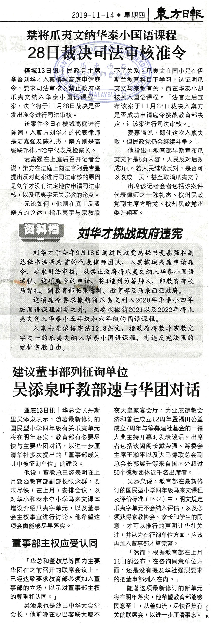 禁将爪夷文纳华泰小国语课程 28日裁决司法审核准令