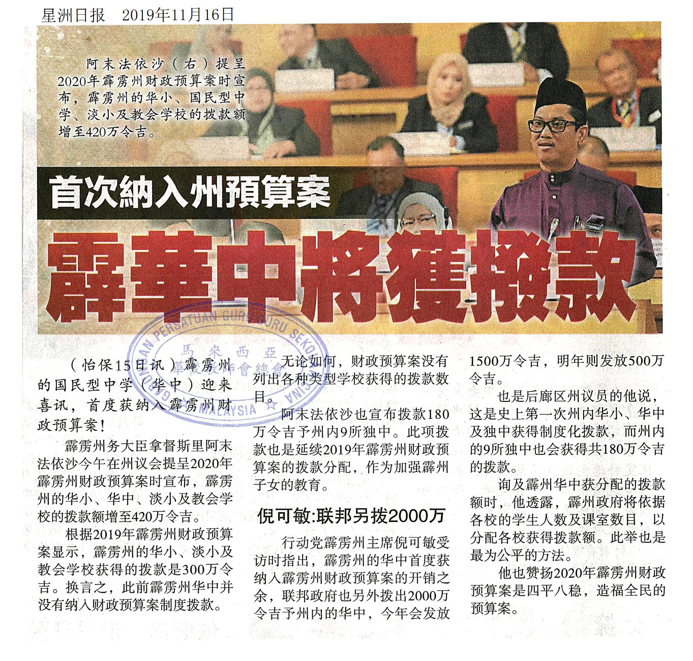 上一篇文章: 沙财案1800万 拨华校教会学校