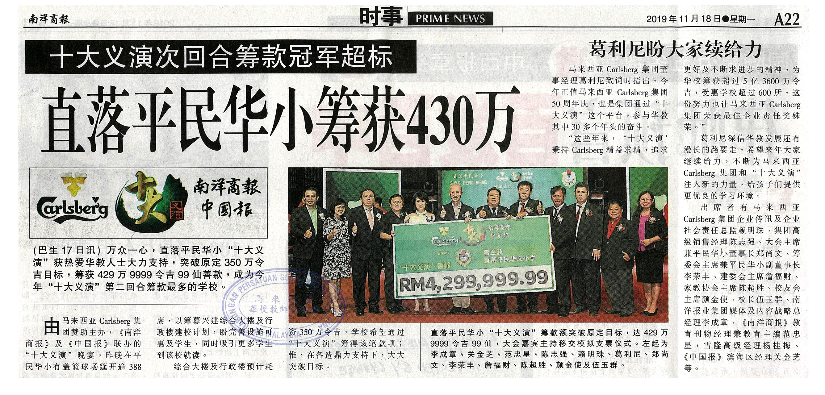 直落平民华小筹获430万