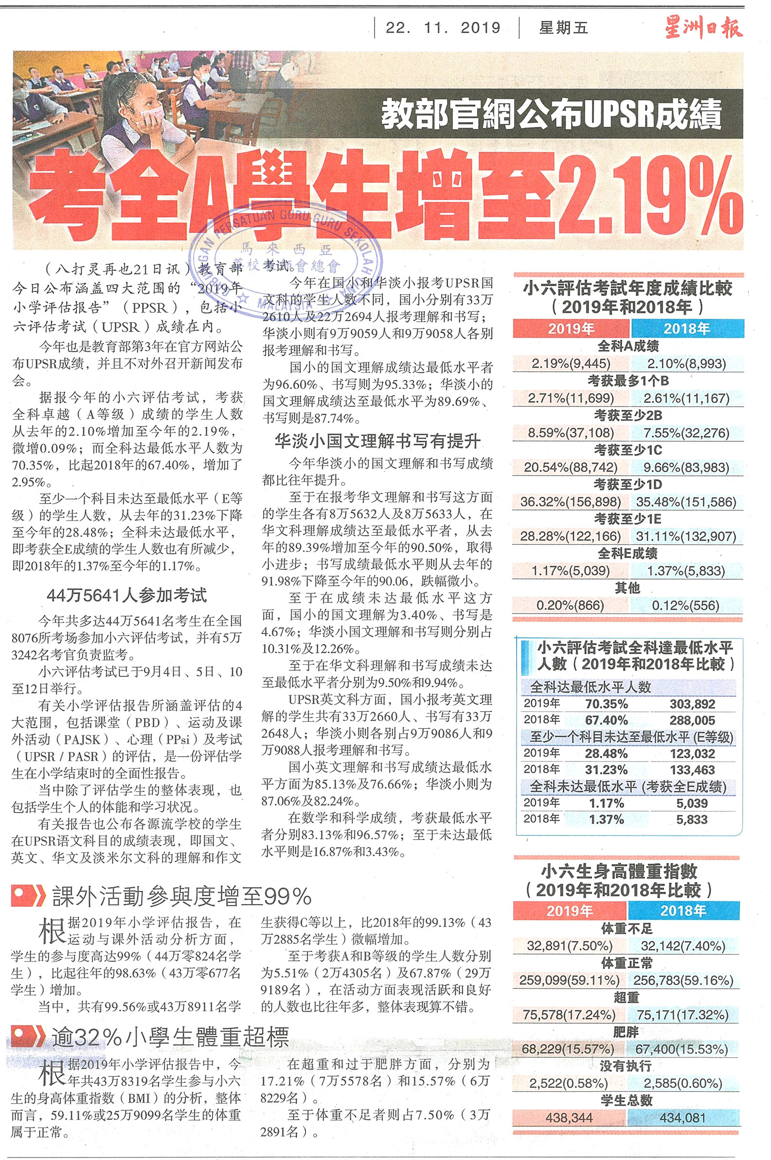 教育部官网公布UPSR成绩 考全A学生增至2.19%