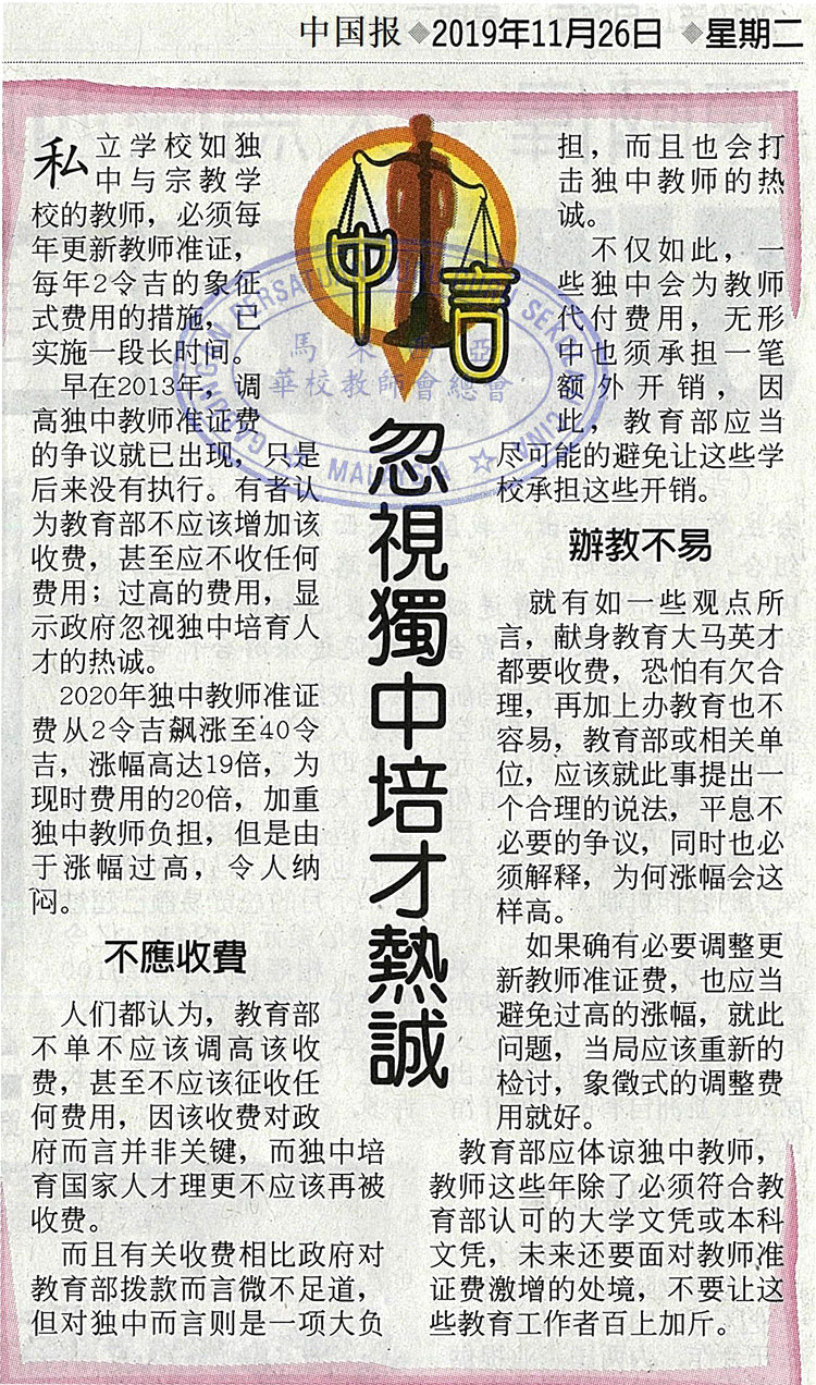 忽视独中培才热诚
