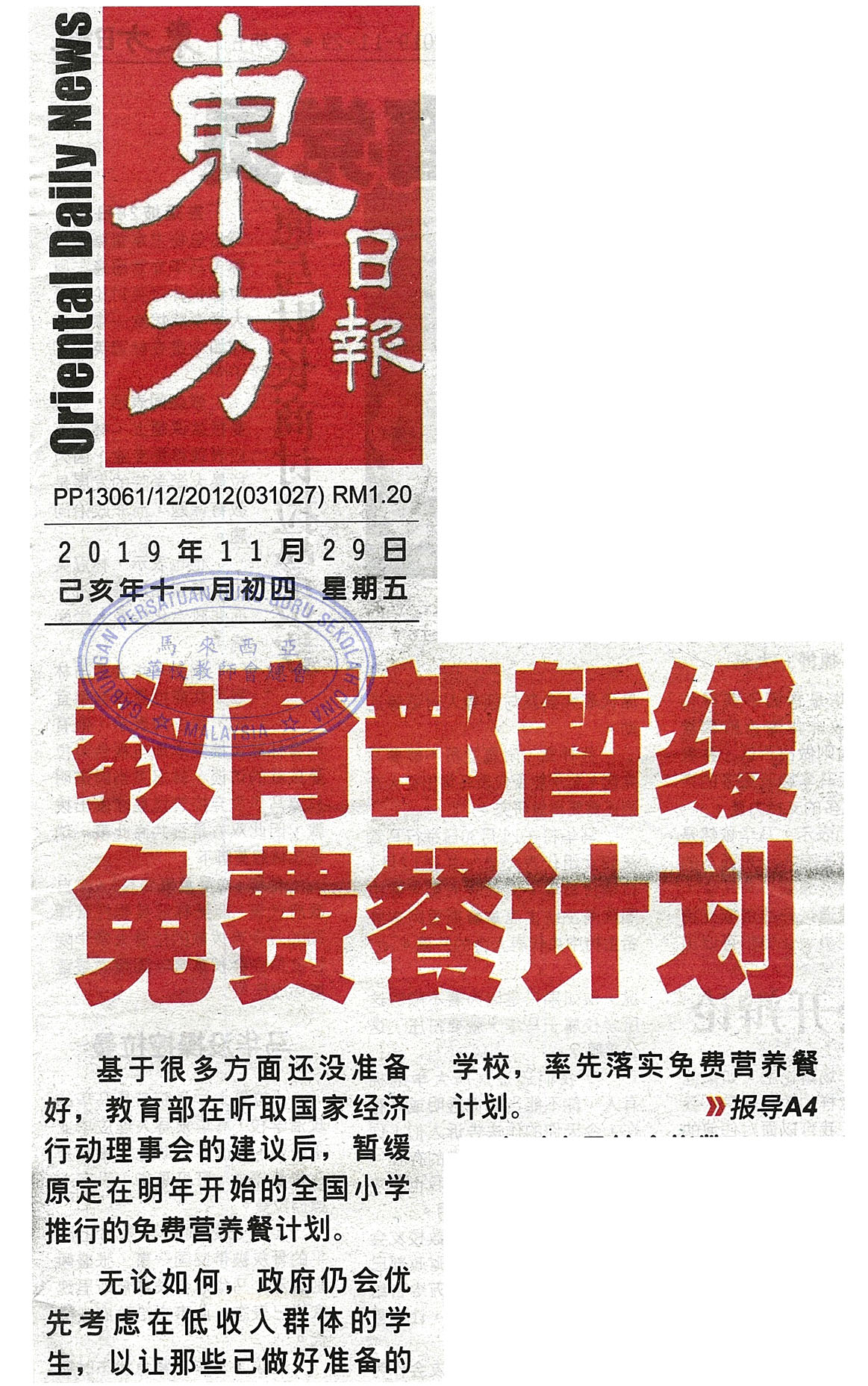 教育部暂缓免费餐计划