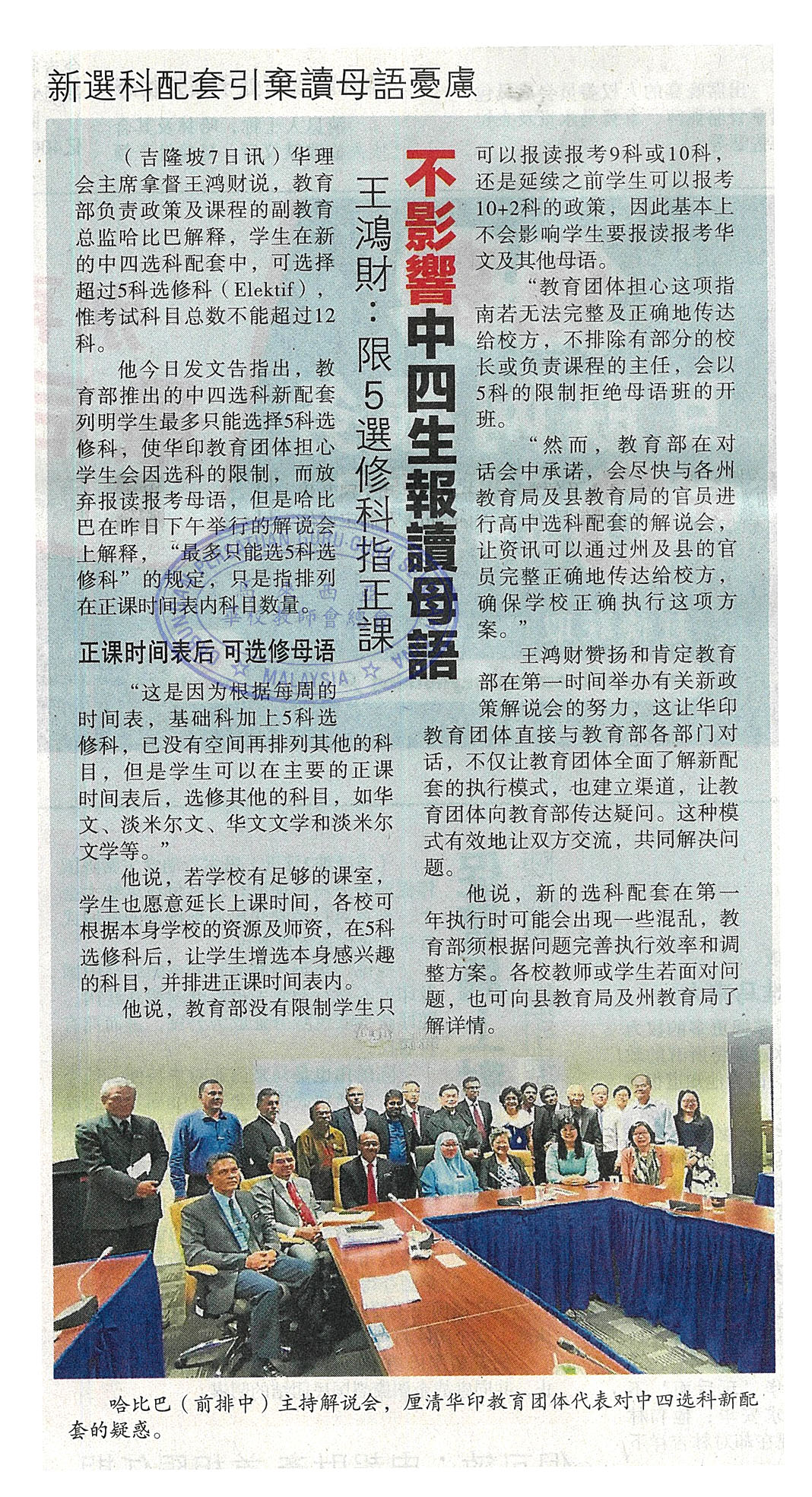 华理会:选科新配套 不影响中四报读母语
