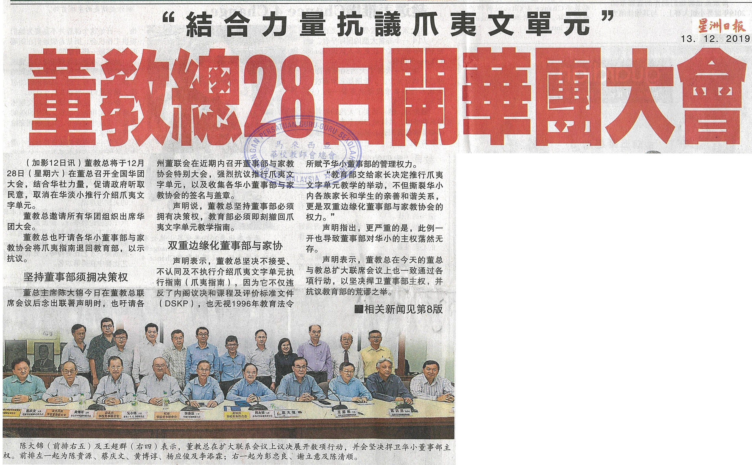 “结合力量抗议爪夷文单元” 董教总28日开华团大会