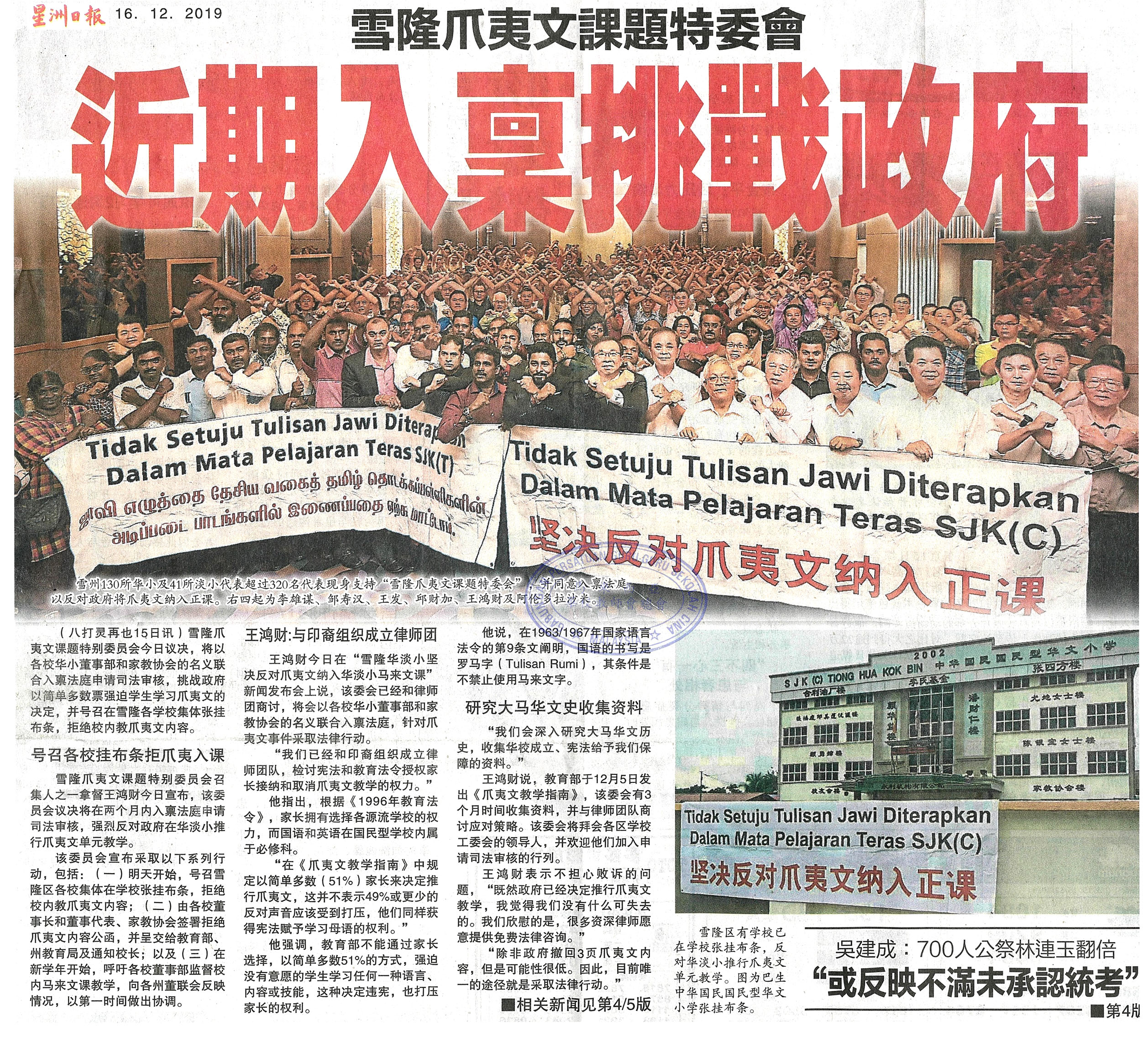 雪隆爪夷文课题特委会 近期入禀挑战政府 WhatsApp 上一篇文章: 吴建成:700人公祭林连玉翻倍 “或反映不满未承认统考” 上一页 下一篇文章: 转换校地申请免印花税被拒 雅格华小需缴逾26万求助 下一页