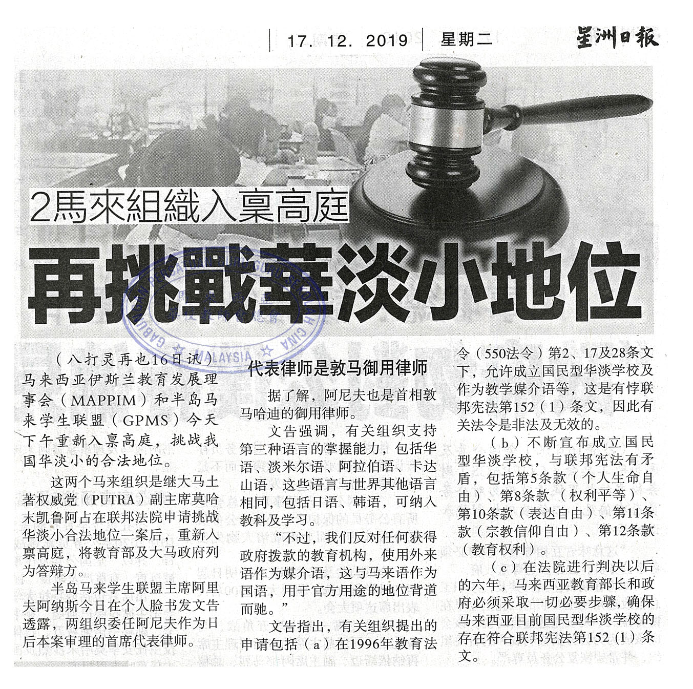 2马来组织入禀高庭 再挑战华淡小地位
