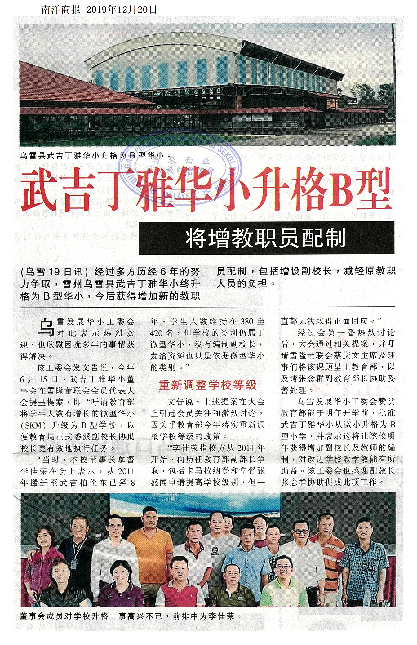 武吉丁雅华小升格B型 将增教职员配制