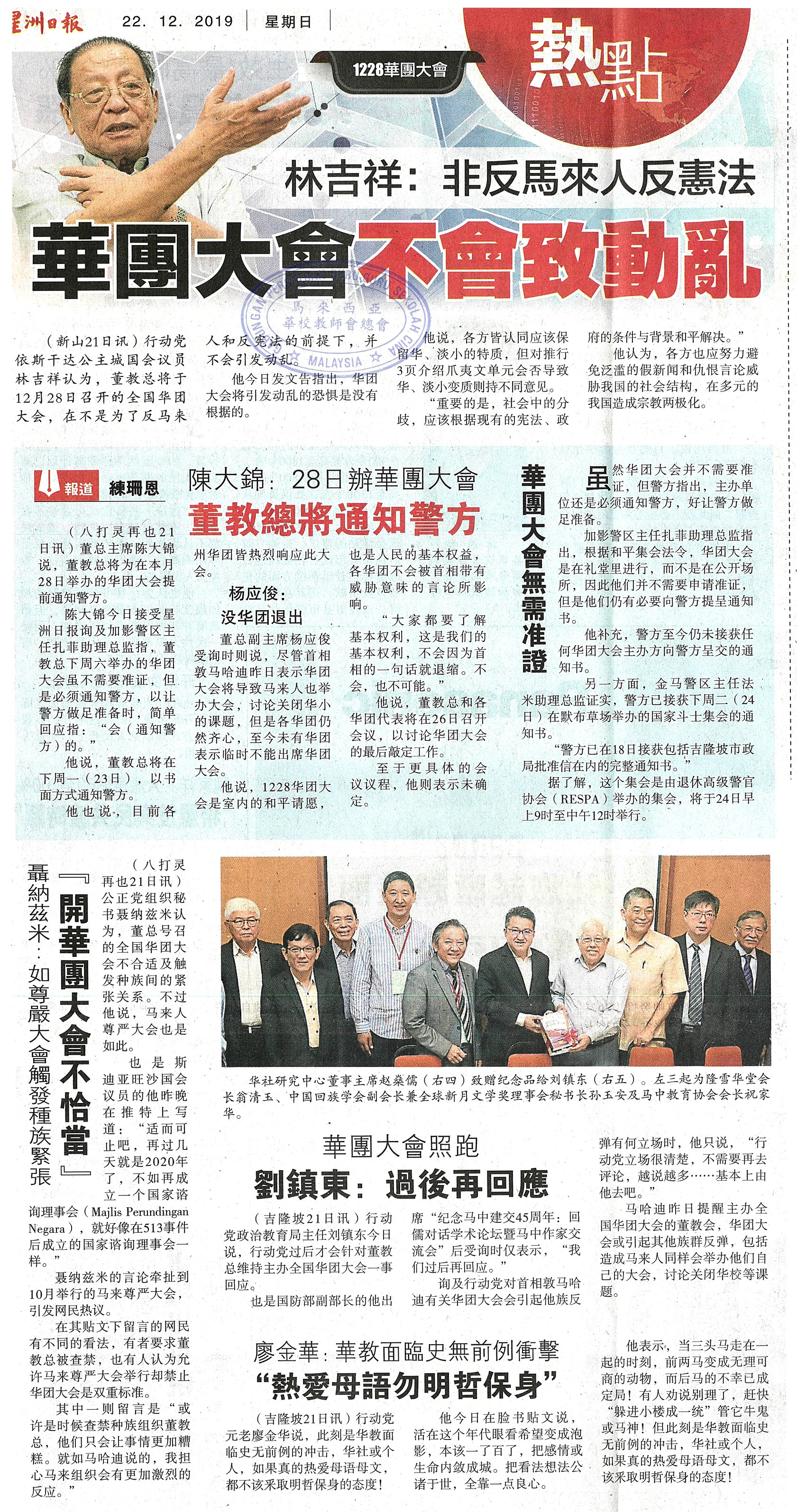 林吉祥:非反马来人反宪法 华团大会不会致动乱 WhatsApp 上一篇文章: 王超群:和平请愿不煽动情绪 华团大会比尊严大会好 上一页 下一篇文章: 魏家祥:反对强制推行爪夷文 华团大会无关种族 下一页