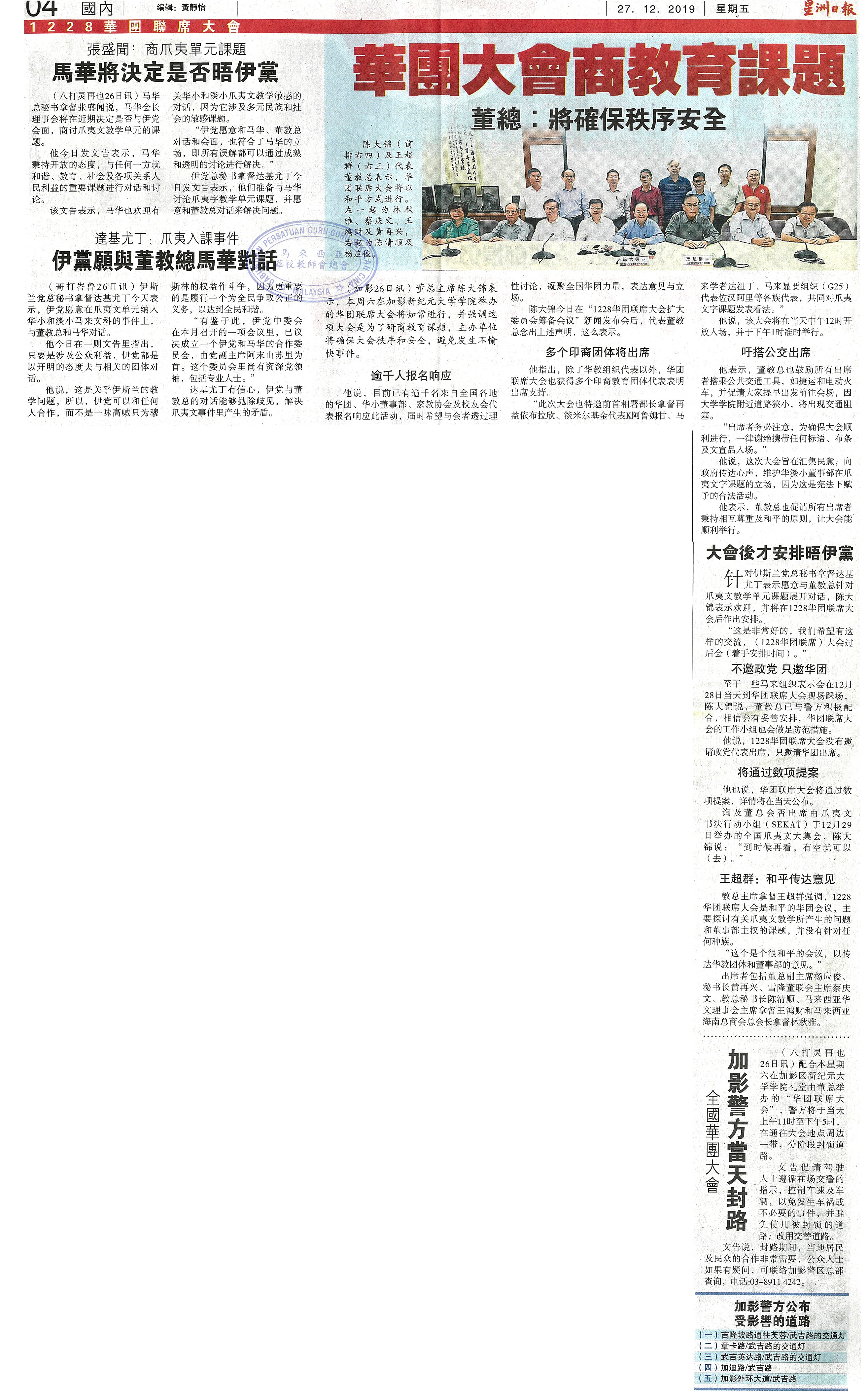 华团大会商教育课题 董教总:将确保秩序安全