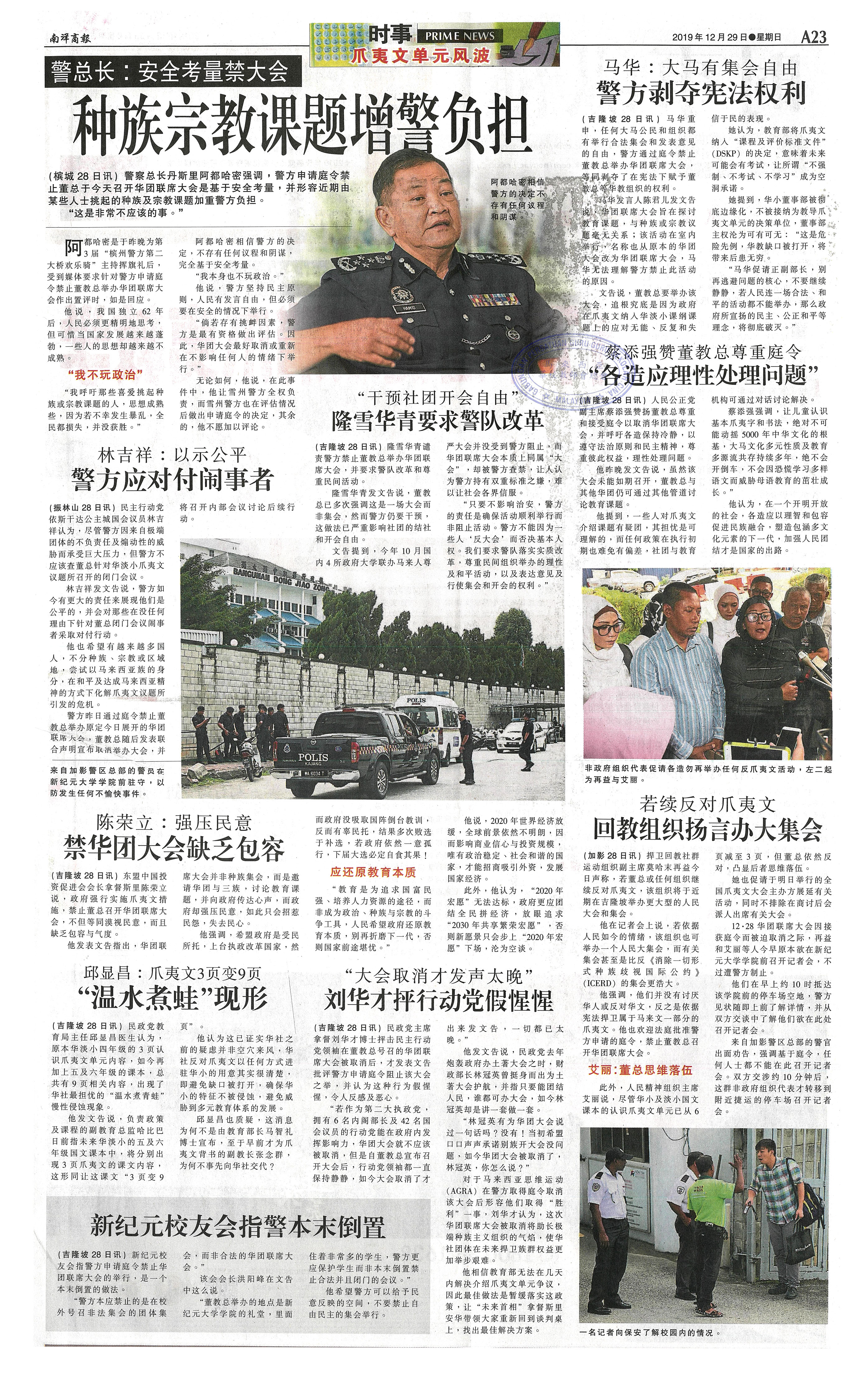 警总长:安全考量禁大会 种族宗教课题增警负担 WhatsApp 上一篇文章: SEKAT:获800人响应今照跑 确保爪夷文大会和平 上一页 下一篇文章: 失望华团大会被禁 拉玛沙米遗憾希盟没发声 下一页