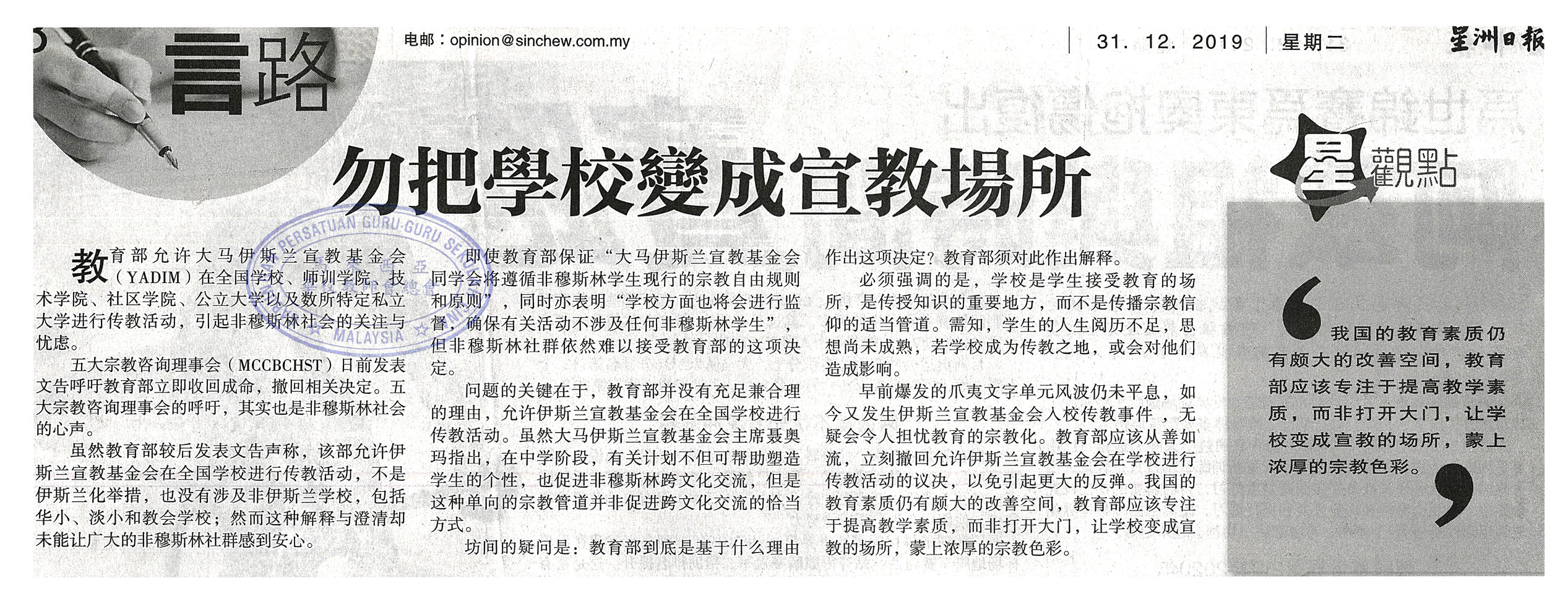 下一篇文章: 李文材:华社想法匪夷所思 爪夷字怎能令华小改制?