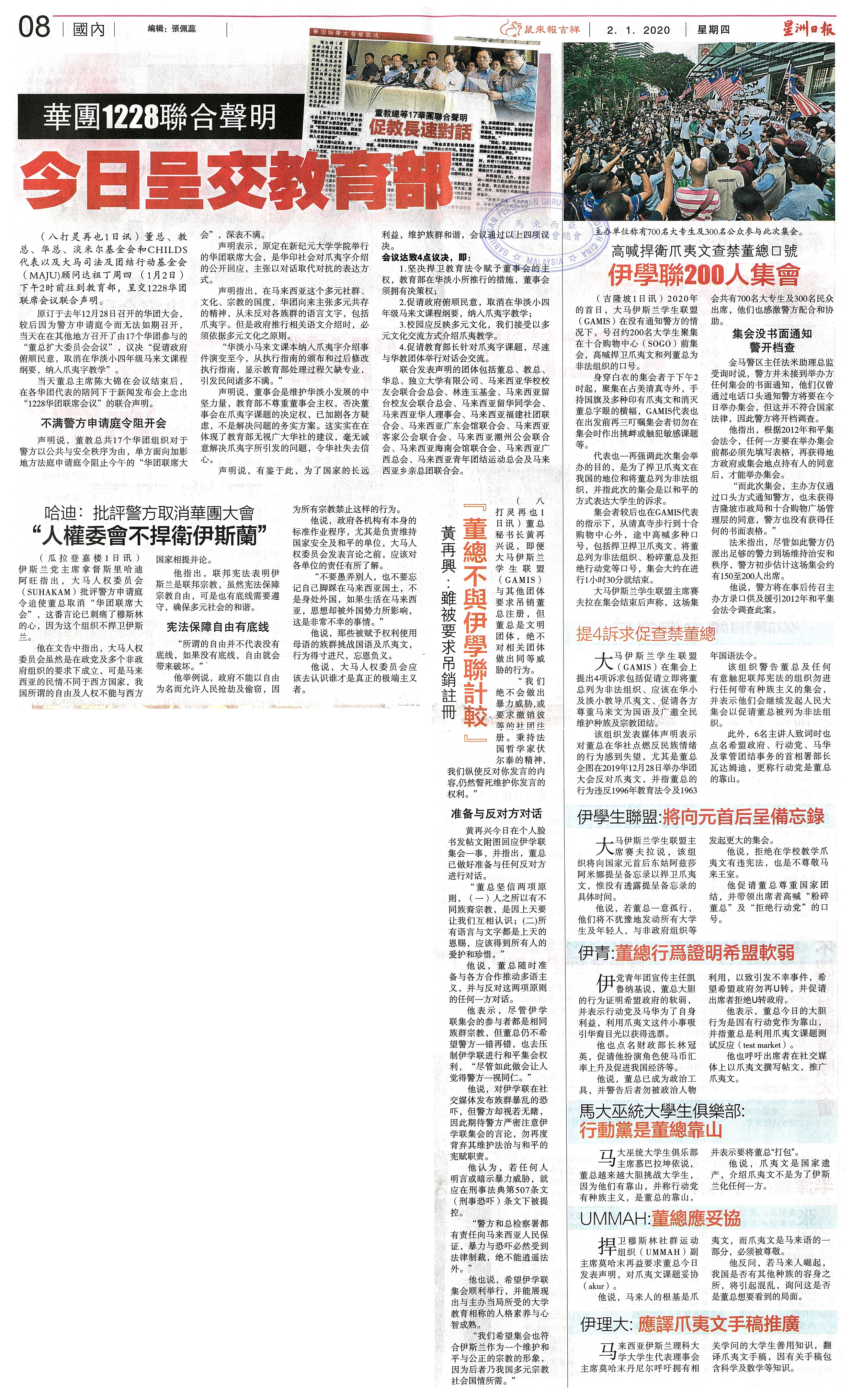华团1228联合声明 今日呈交教育部