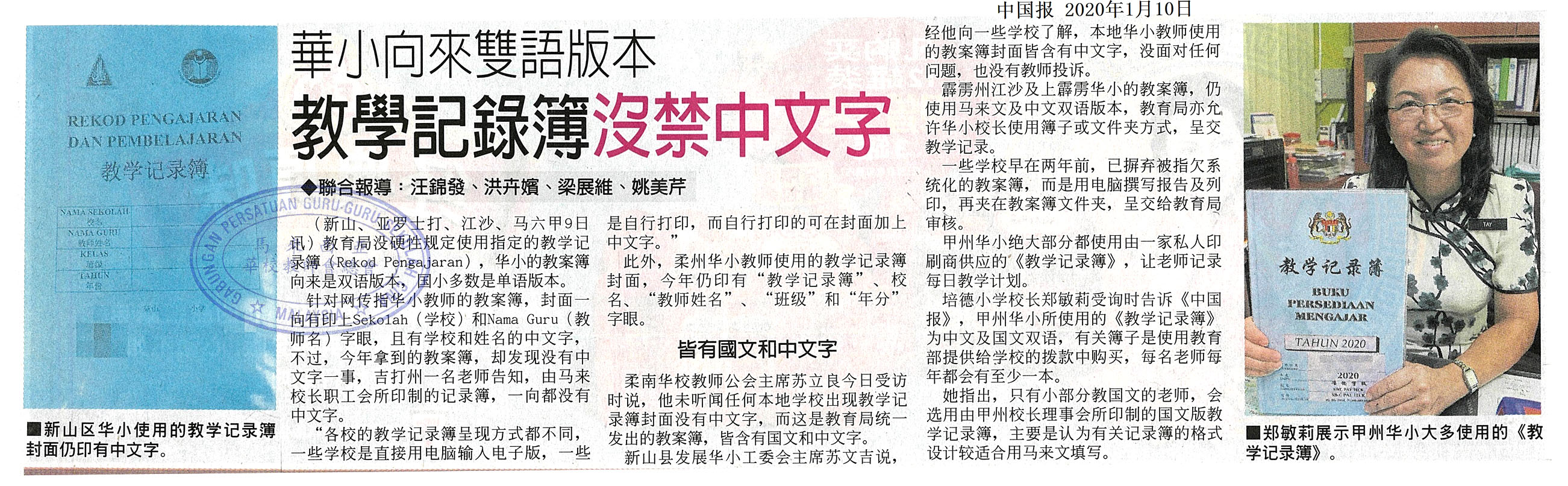 华小向来双语版本 教学记录簿没禁中文字