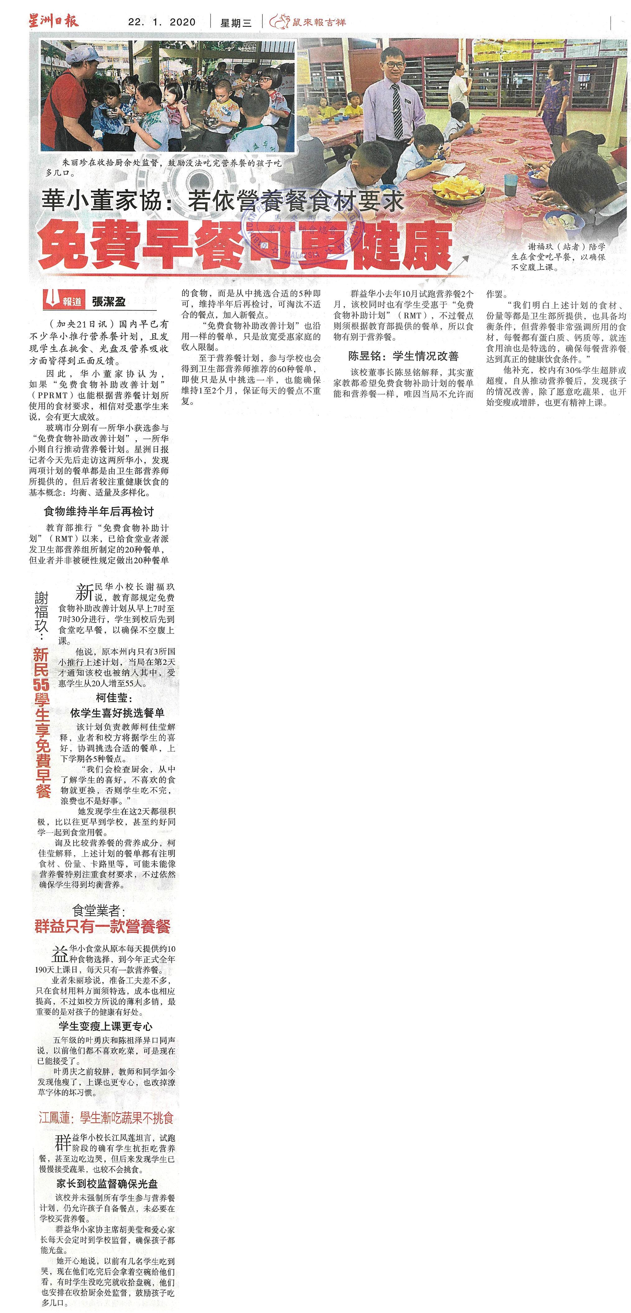 华小董家协:若依营养餐食材要求 免费早餐可更健康