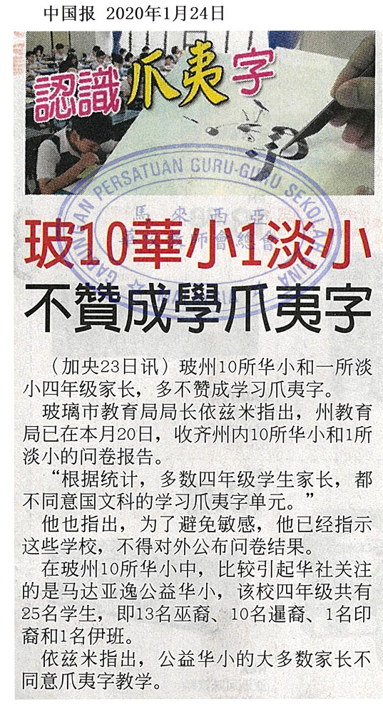 玻10华小1淡小 不赞成学爪夷字