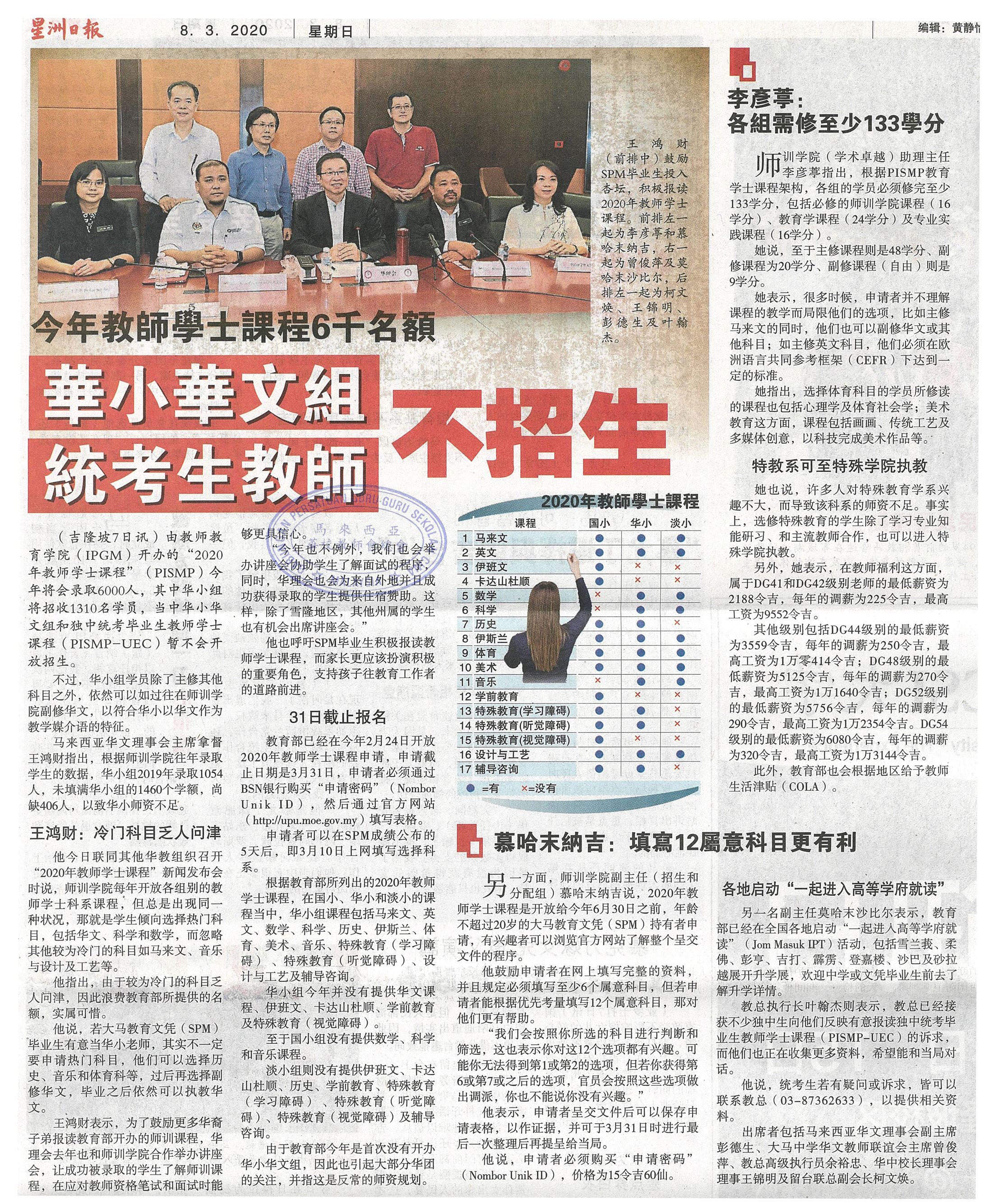 今年教师学士课程6千名额 华小华文组 统考生教师 不招生 WhatsApp 上一篇文章: 统考报告待呈内阁 陈大锦盼新政府听民意 上一页 下一篇文章: 鼓励华裔申请师范课程 董教总推展“我要当老师” 下一页