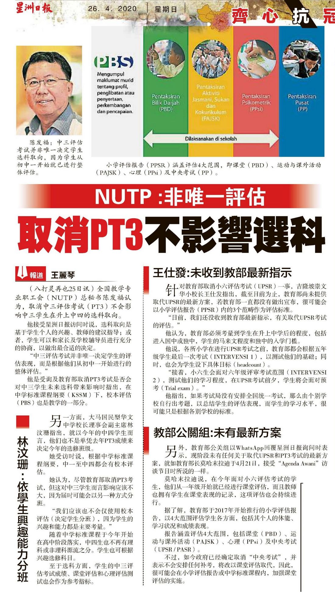 下一篇文章: 教长:已有课堂评估 UPSR PT3 不会补考