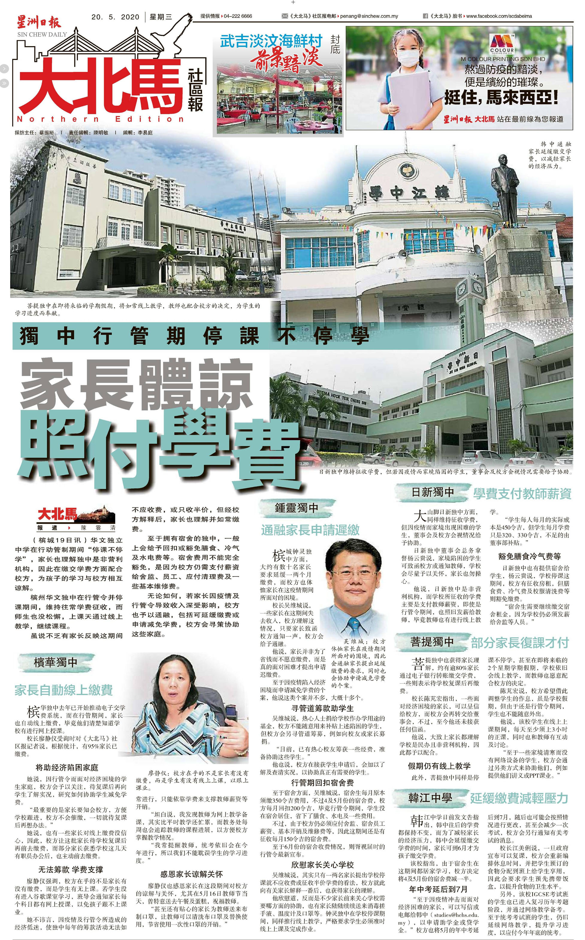 独中行管期停课不停学 家长体谅照付学费