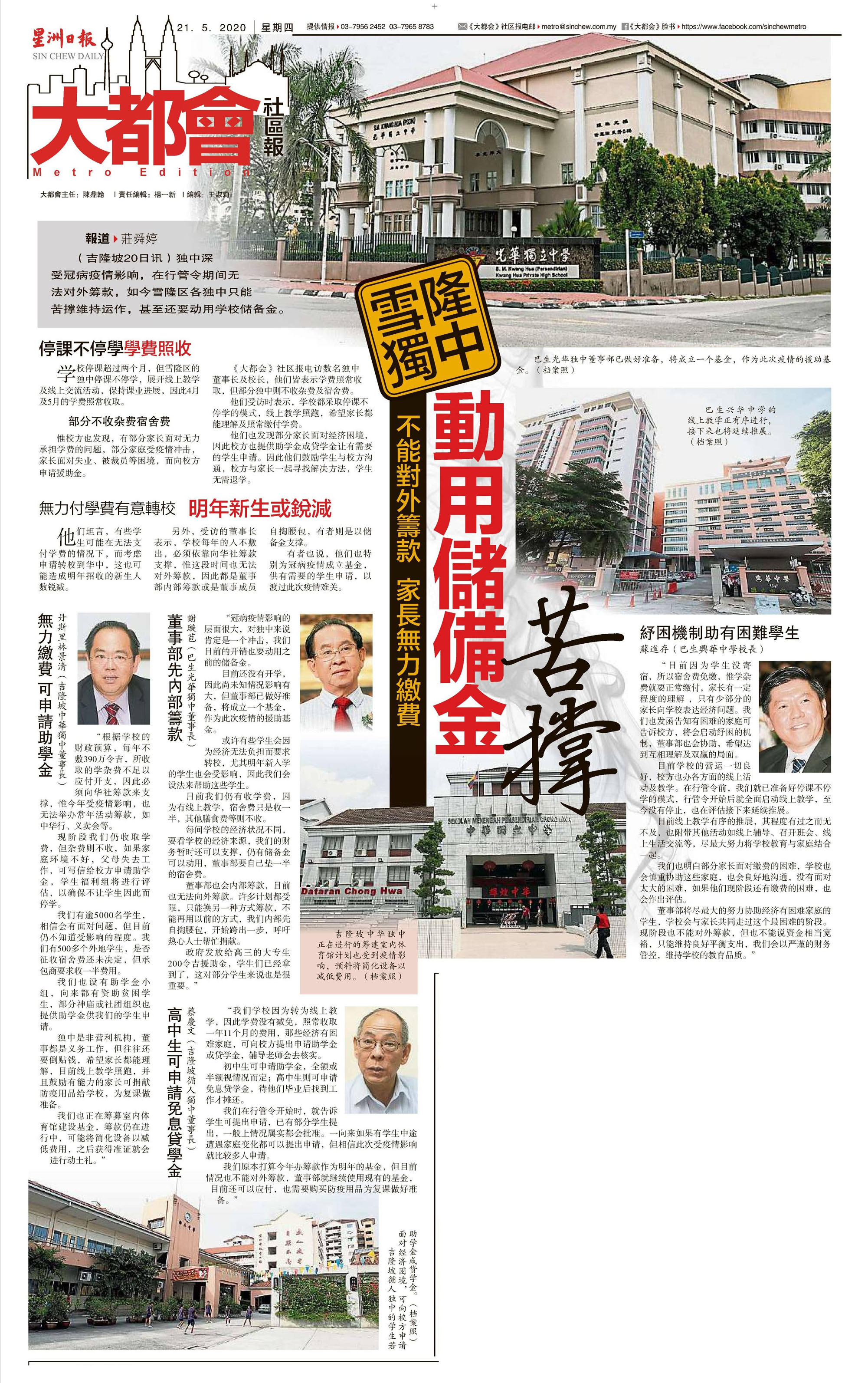 不能对外筹款 家长无力缴费 雪隆独中动用储备金苦撑