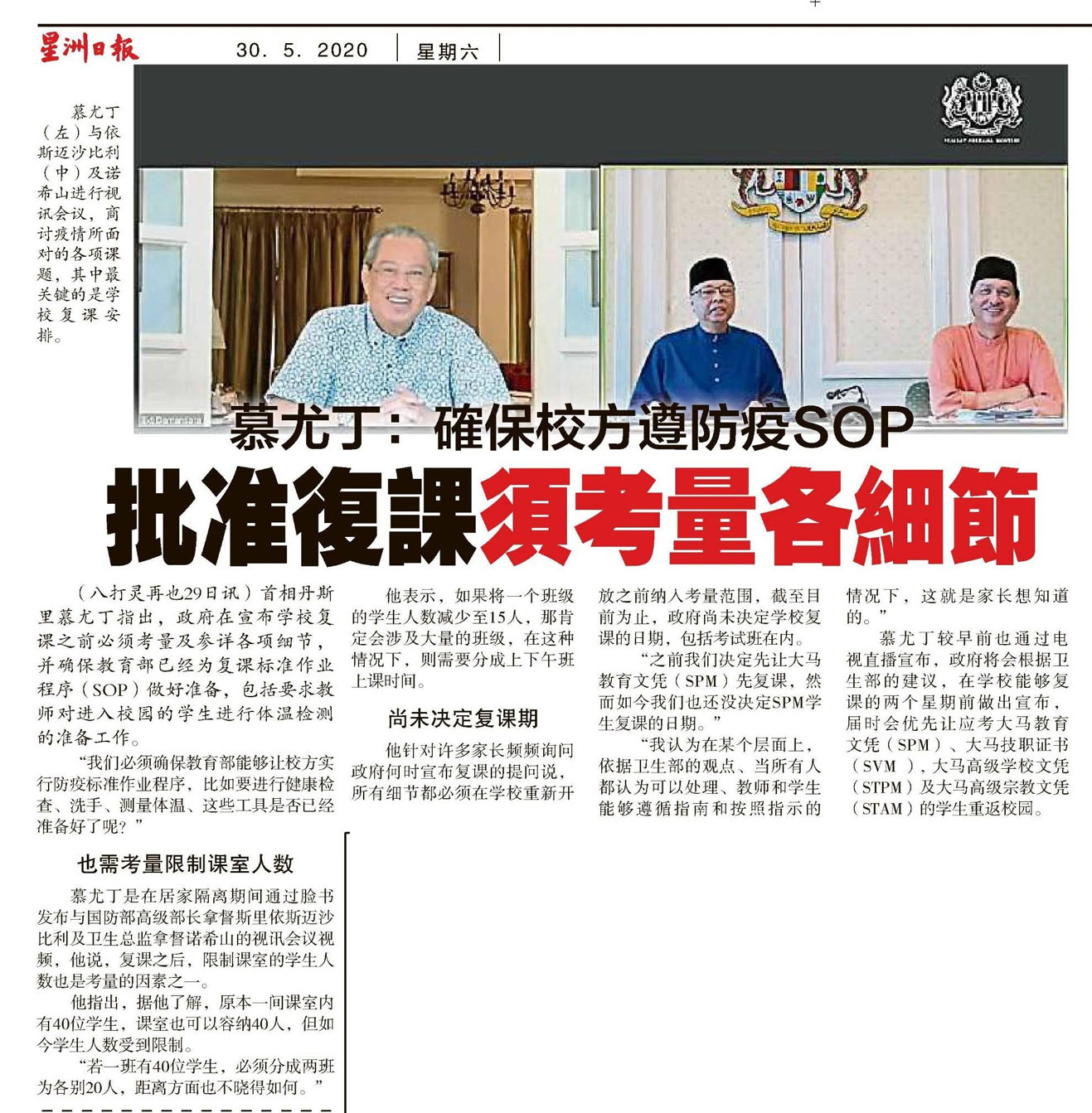 慕尤丁:确保校方遵防疫SOP 批准复课须考量各细节
